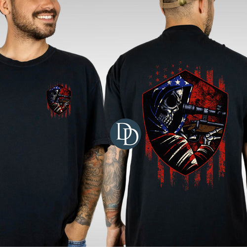 OVERSIZED Distressed Flag Skull Scope with Pocket Print *DTF Transfer*