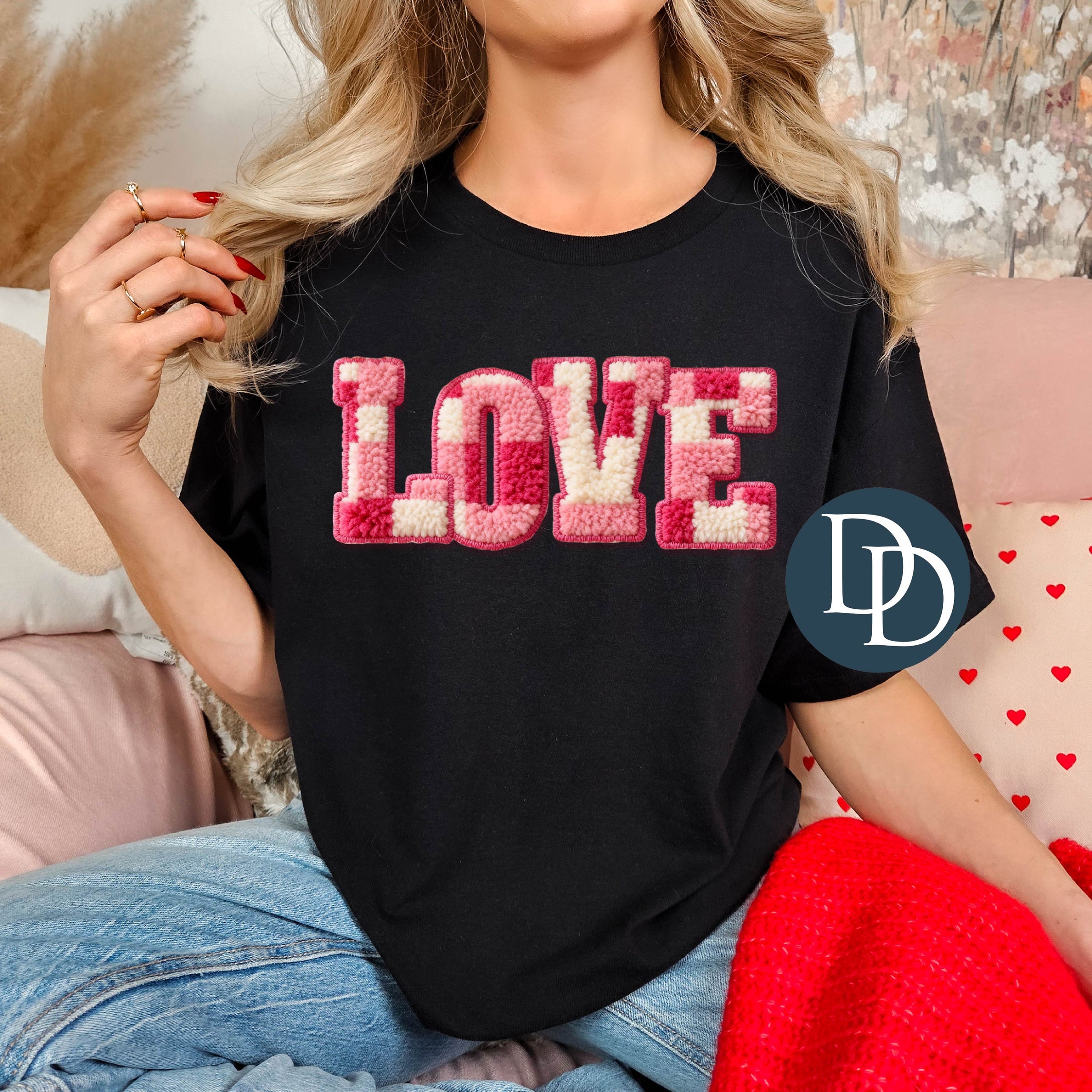 Love Pink Checkered Faux Yarn *DTF Transfer*