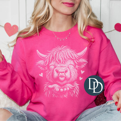 Valentine's Sucker Highland Cow (White Ink) *Screen Print Transfer*