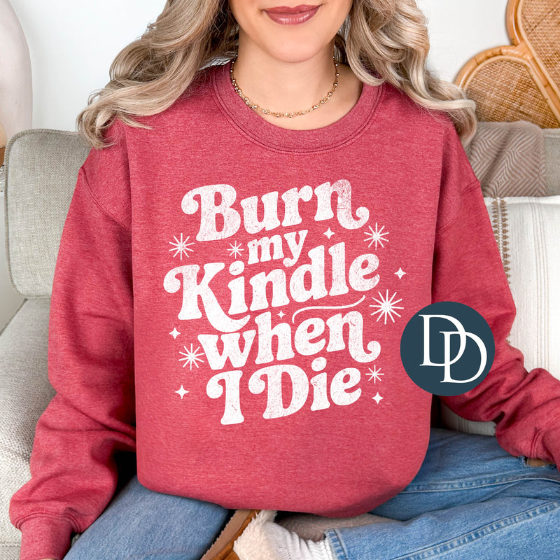Burn My Kindle When I Die (White Ink) *Screen Print Transfer*