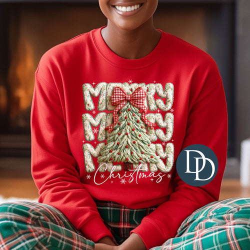 Merry Christmas Tree Stack Faux Yarn *DTF Transfer