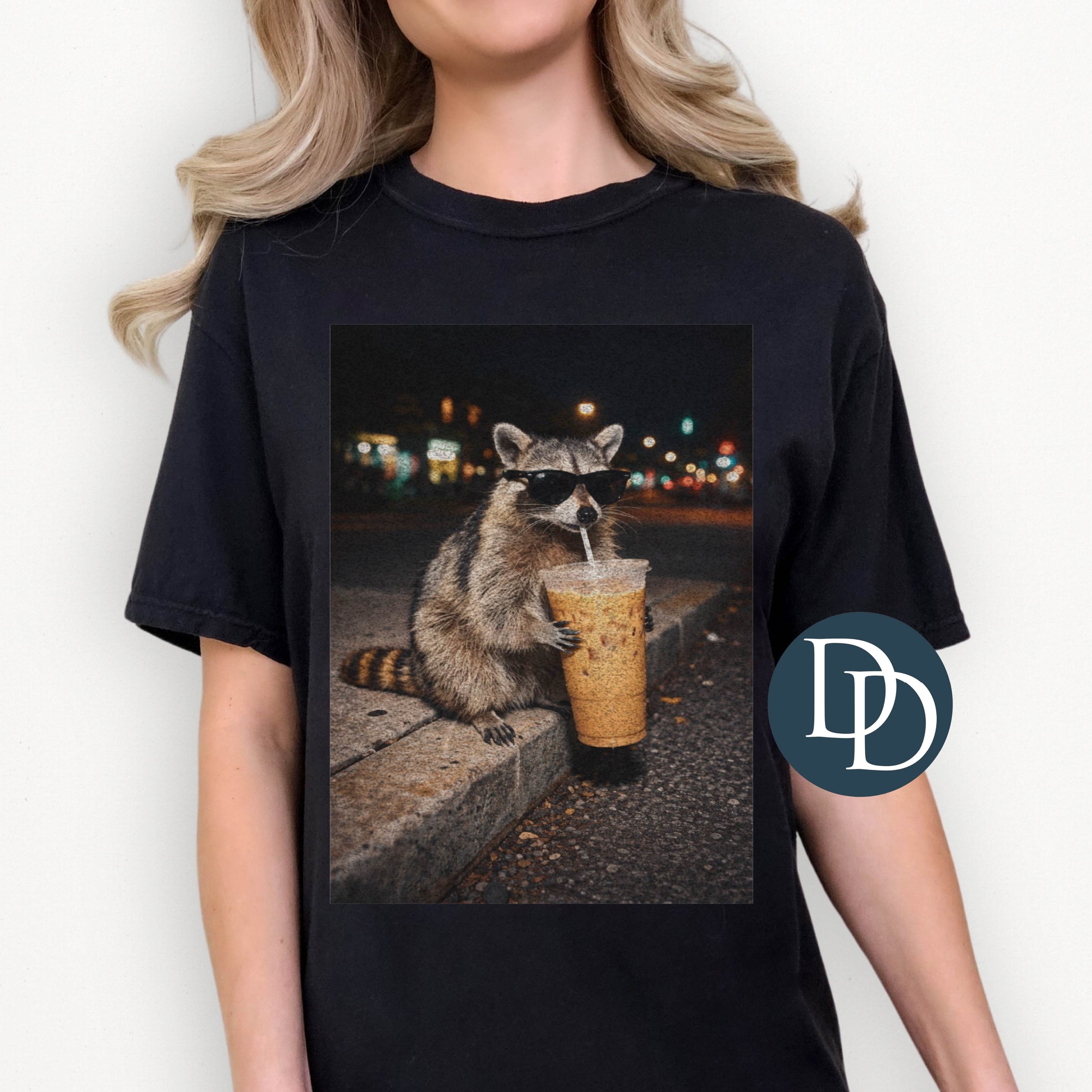 OVERSIZED Iced Coffee Raccoon *DTF Transfer*