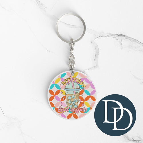 But First Iced Coffee *Round Keychain UV DTF Decal*
