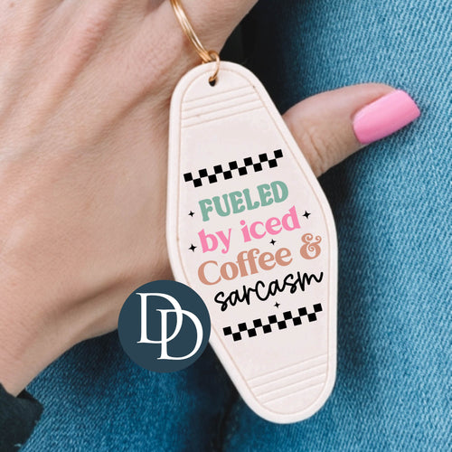 Fueled By Iced Coffee And Sarcasm Checker *Motel Keychain UV DTF Decal*