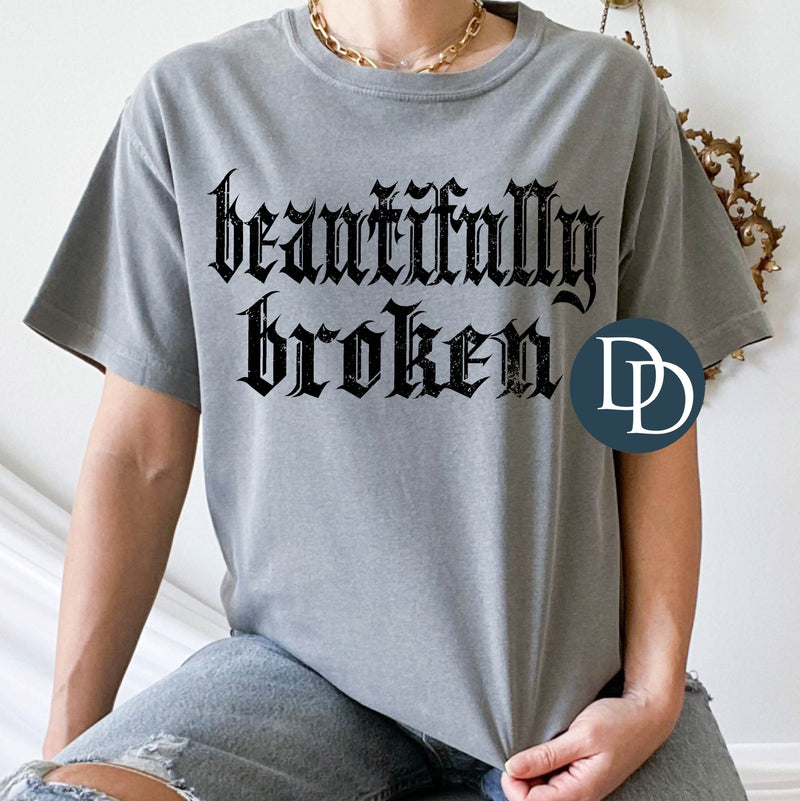 OVERSIZED Beautifully Broken (Black Ink) *Screen Print Transfer*
