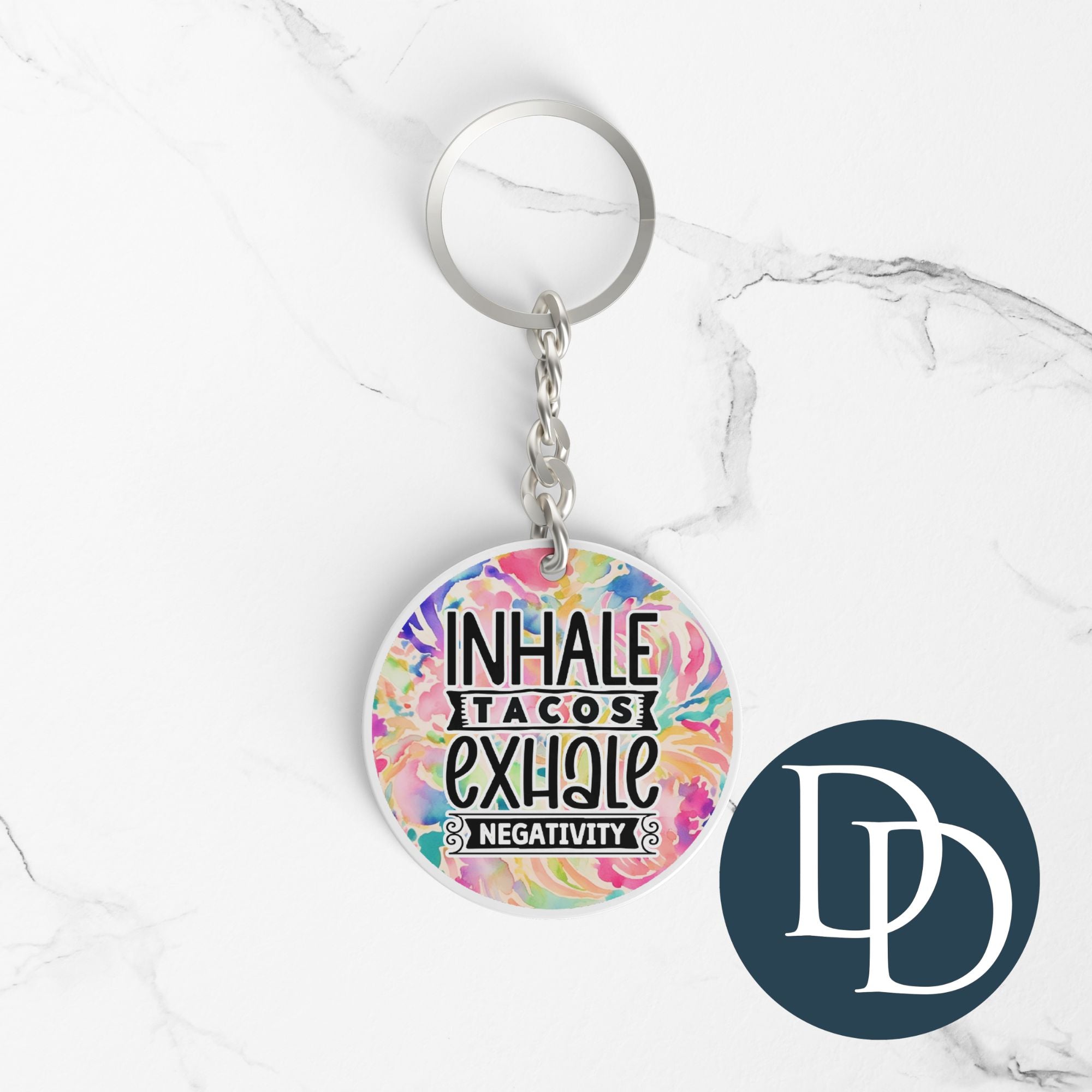 Inhale Tacos Exhale Negativity *Round Keychain UV DTF Decal*