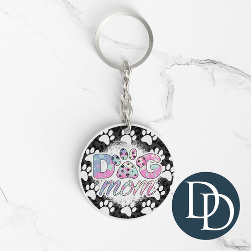 Dog Mom Colorful Paw Prints *Round Keychain UV DTF Decal*