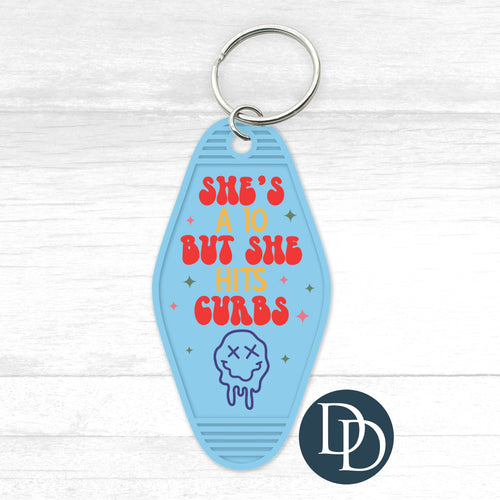 She's A 10 But She Hits Curbs *Motel Keychain UV DTF Decal*