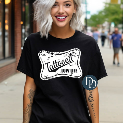 Tattooed Low Life Banner (White Ink) - NOT RESTOCKING - *Screen Print Transfer*