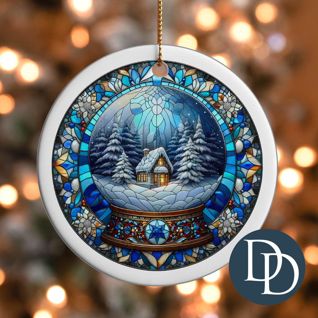 Winter Cabin Snowglobe Stained Glass *UV DTF Ornament Decal*