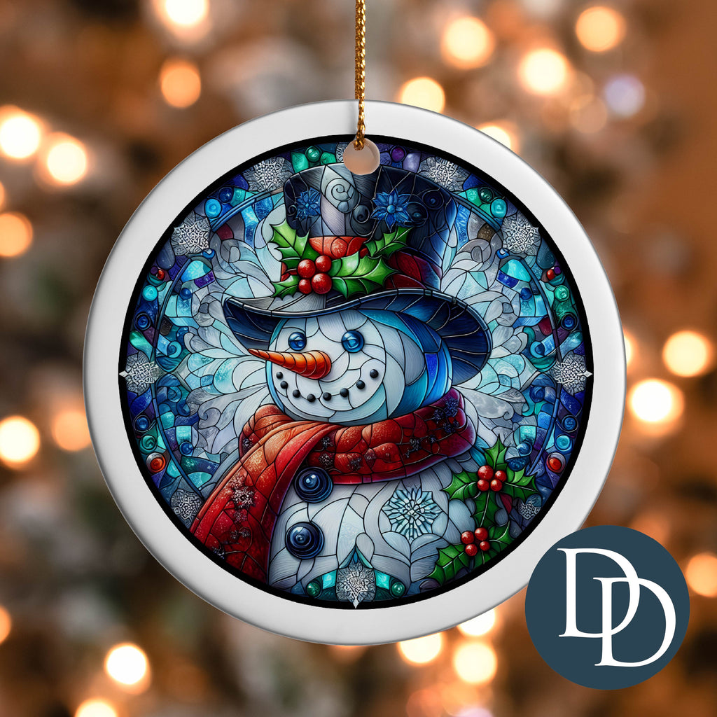 Vintage Snowman Stained Glass *UV DTF Ornament Decal*