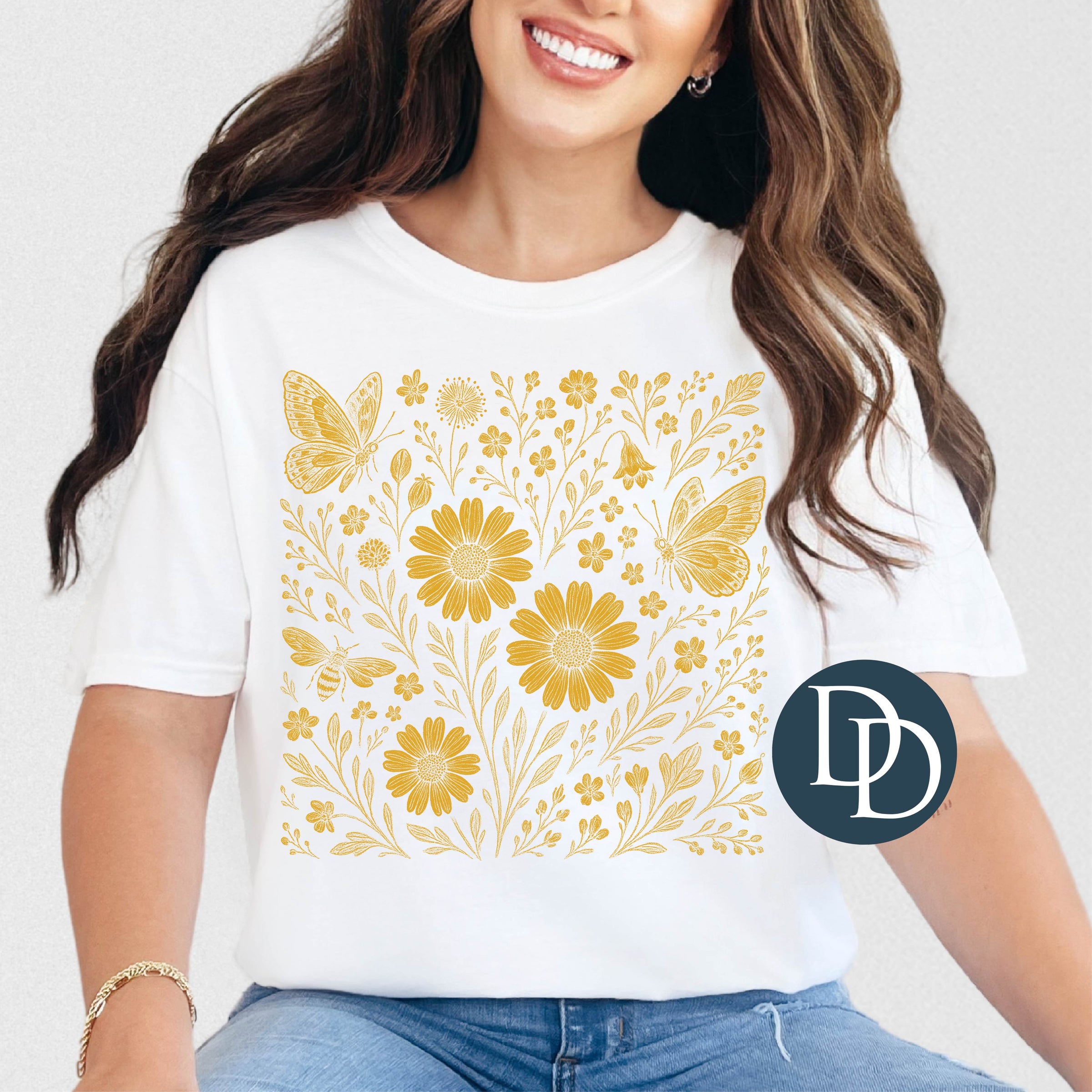 Boho Spring Florals (Mustard Ink) *Screen Print Transfer*