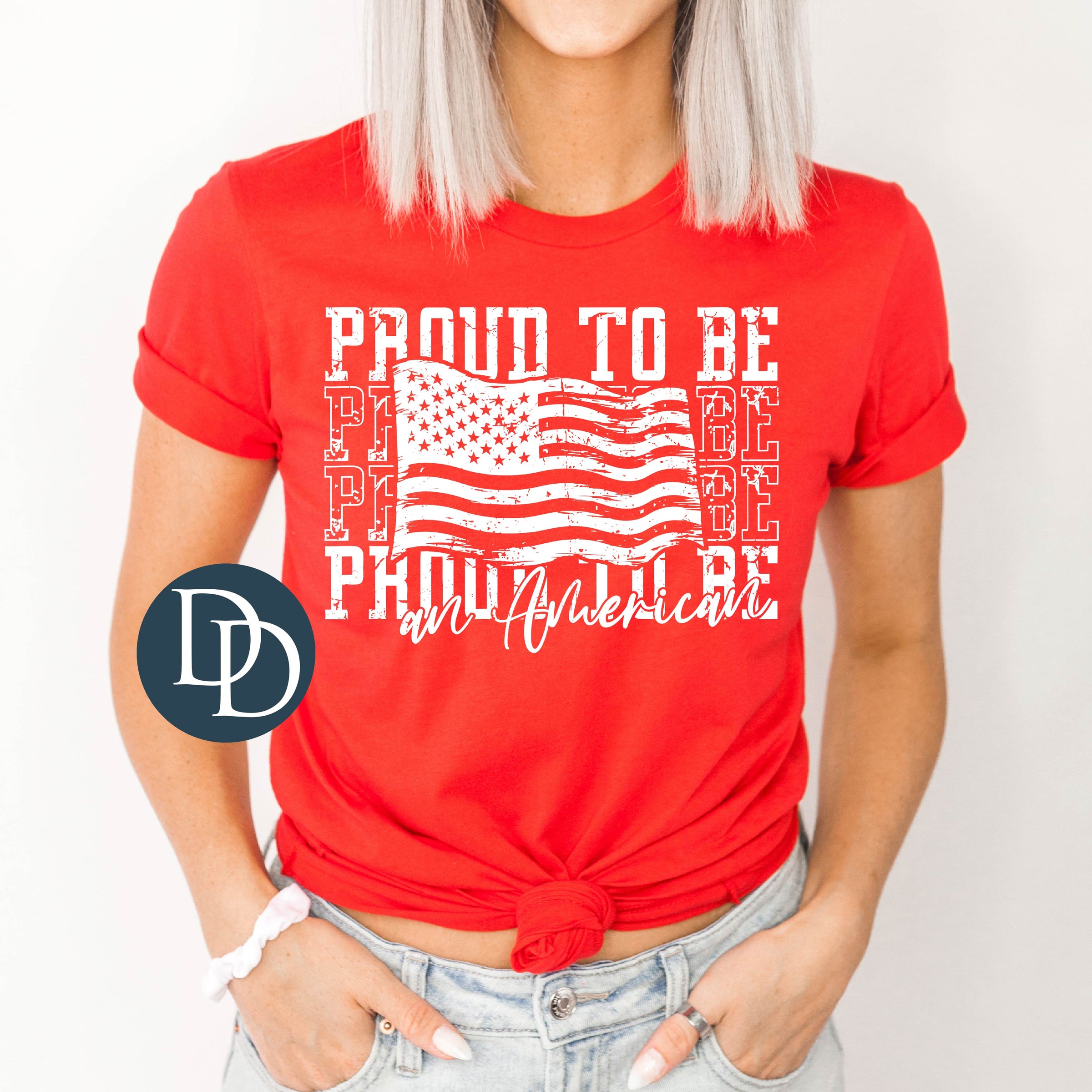 Distressed Proud to be an American (White Ink) *Screen Print Transfer*