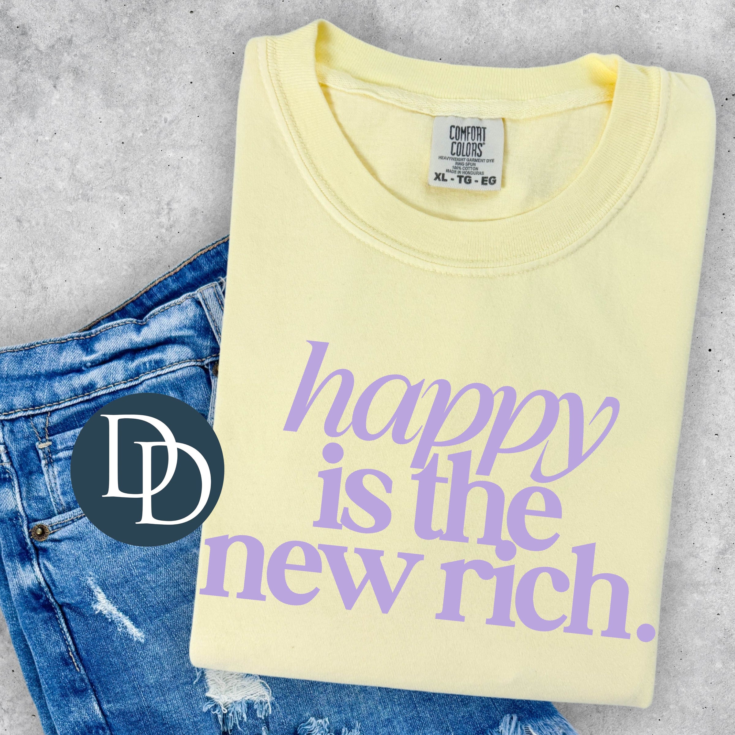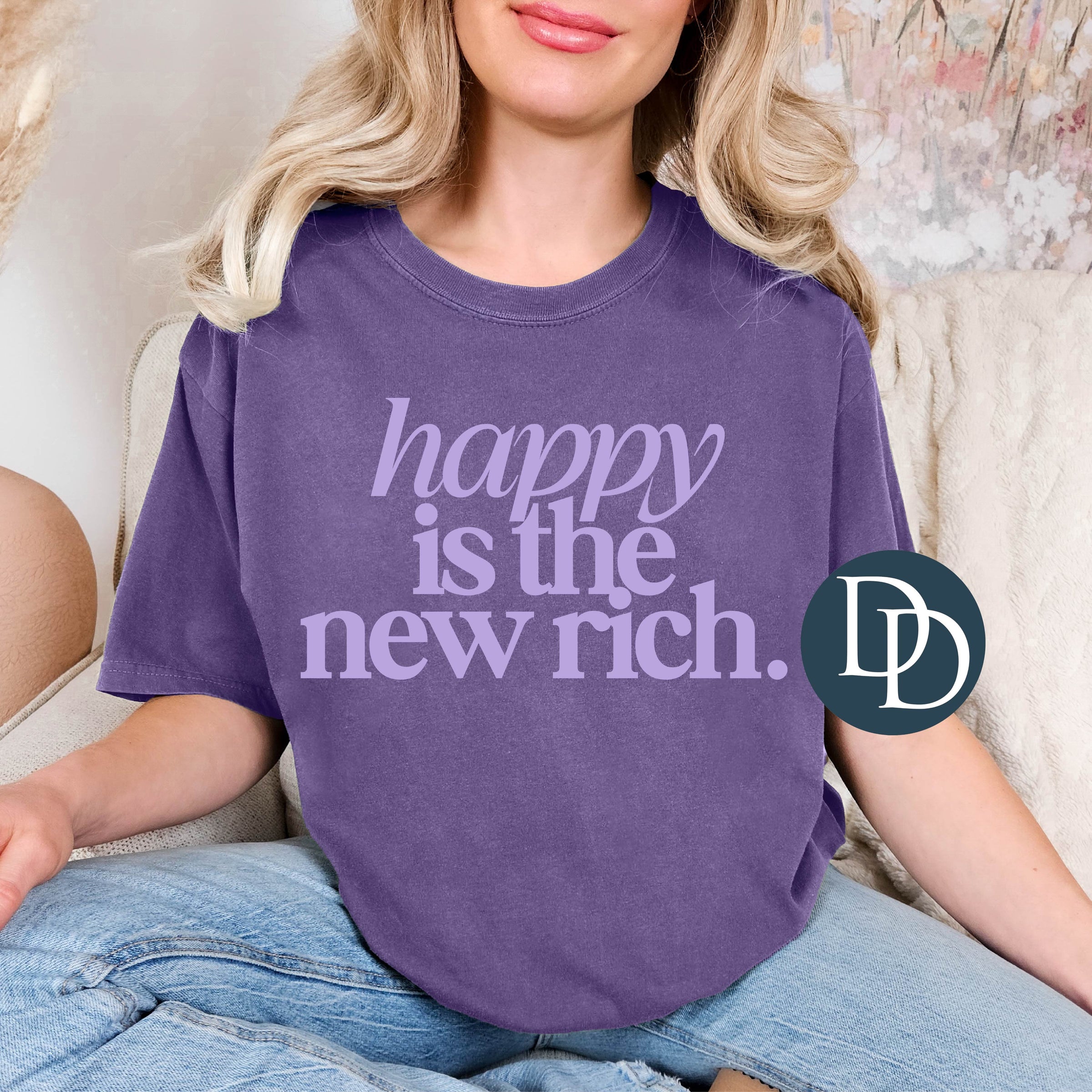 Happy Is The New Rich (Lavender Ink) *Screen Print Transfer*