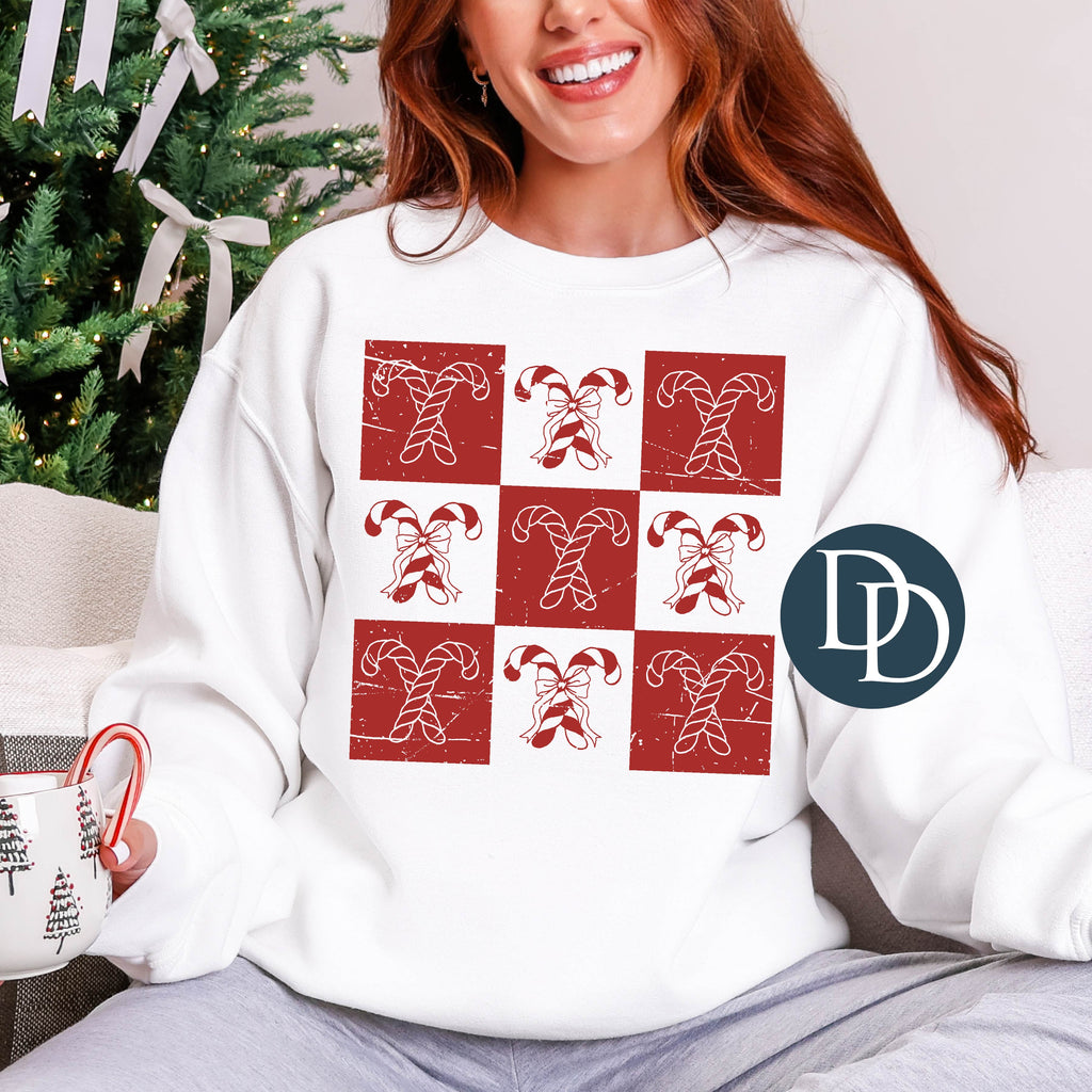 Checkered Candy Canes (Red Ink) *Screen Print Transfer*