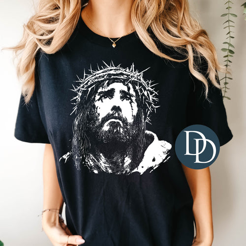 Jesus Crown Of Thorns (White Ink) *Screen Print Transfer*
