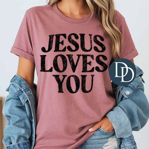 OVERSIZED Jesus Loves You Distressed (Black Ink) *Screen Print Transfer*