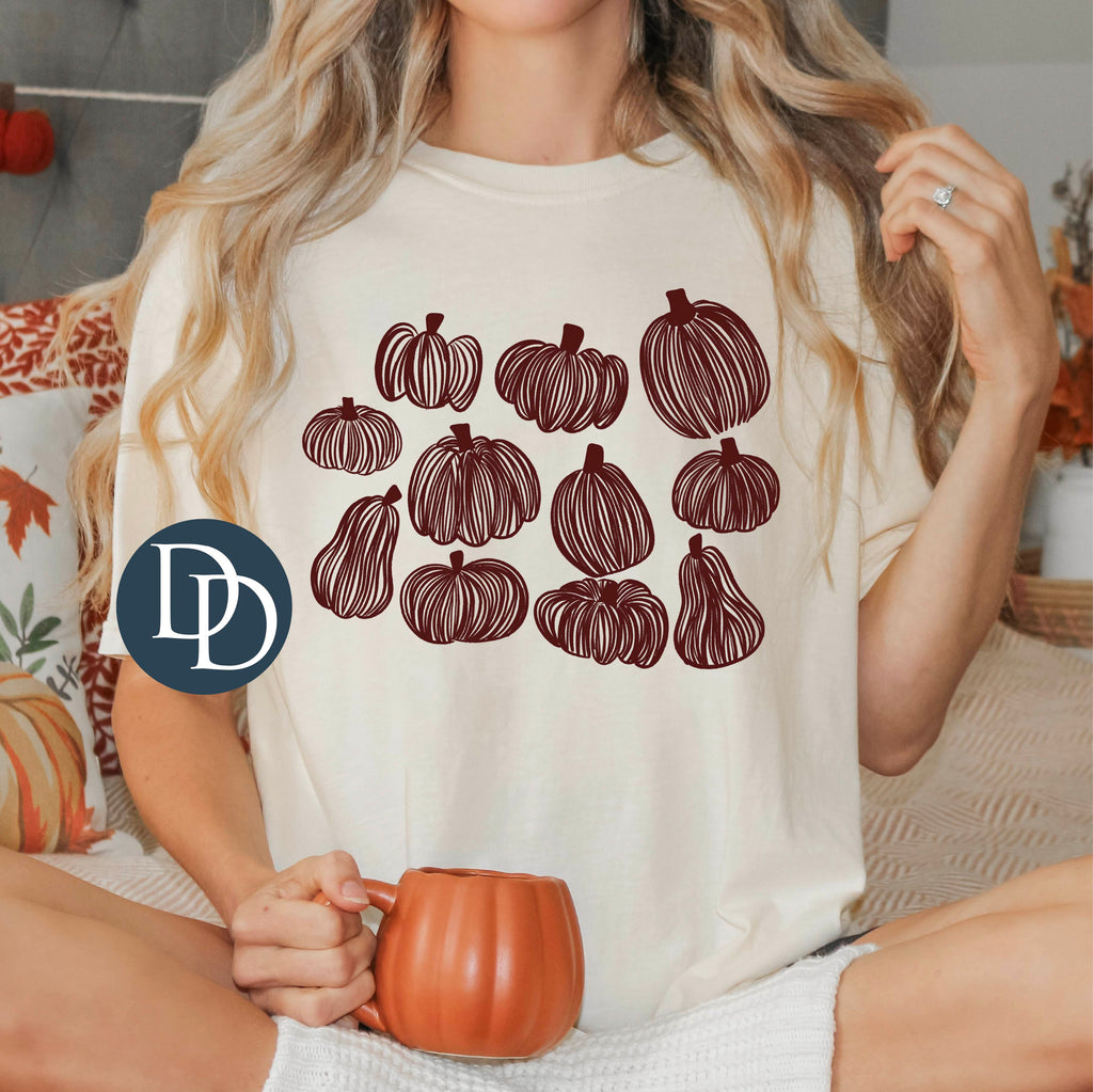 Pumpkin Sketches (Maroon Ink) *Screen Print Transfer*