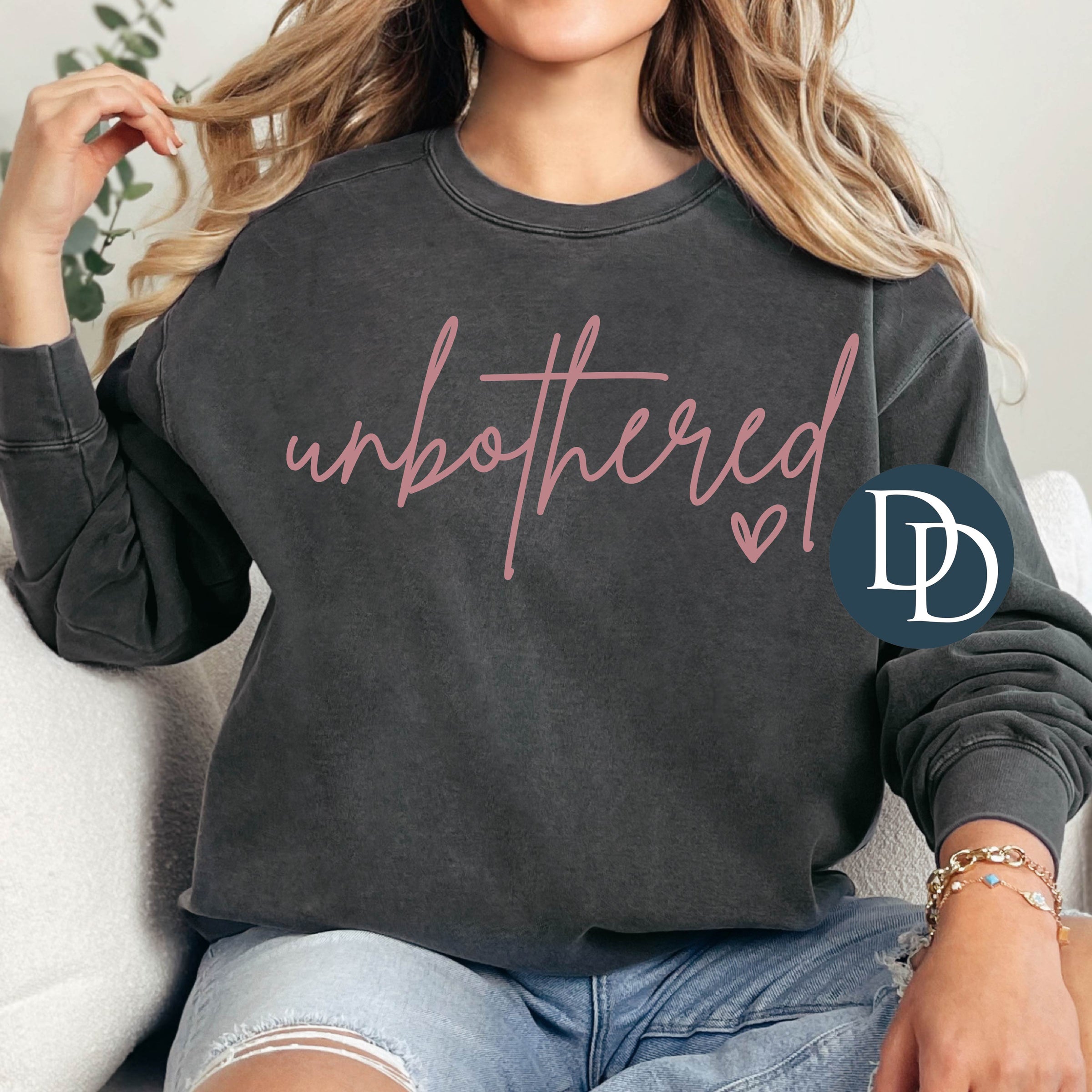 OVERSIZED Unbothered Script (Dusty Rose Ink) *Screen Print Transfer*