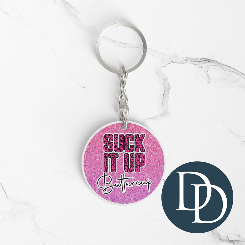 Suck It Up Buttercup Faux Glitter *Round Keychain UV DTF Decal*