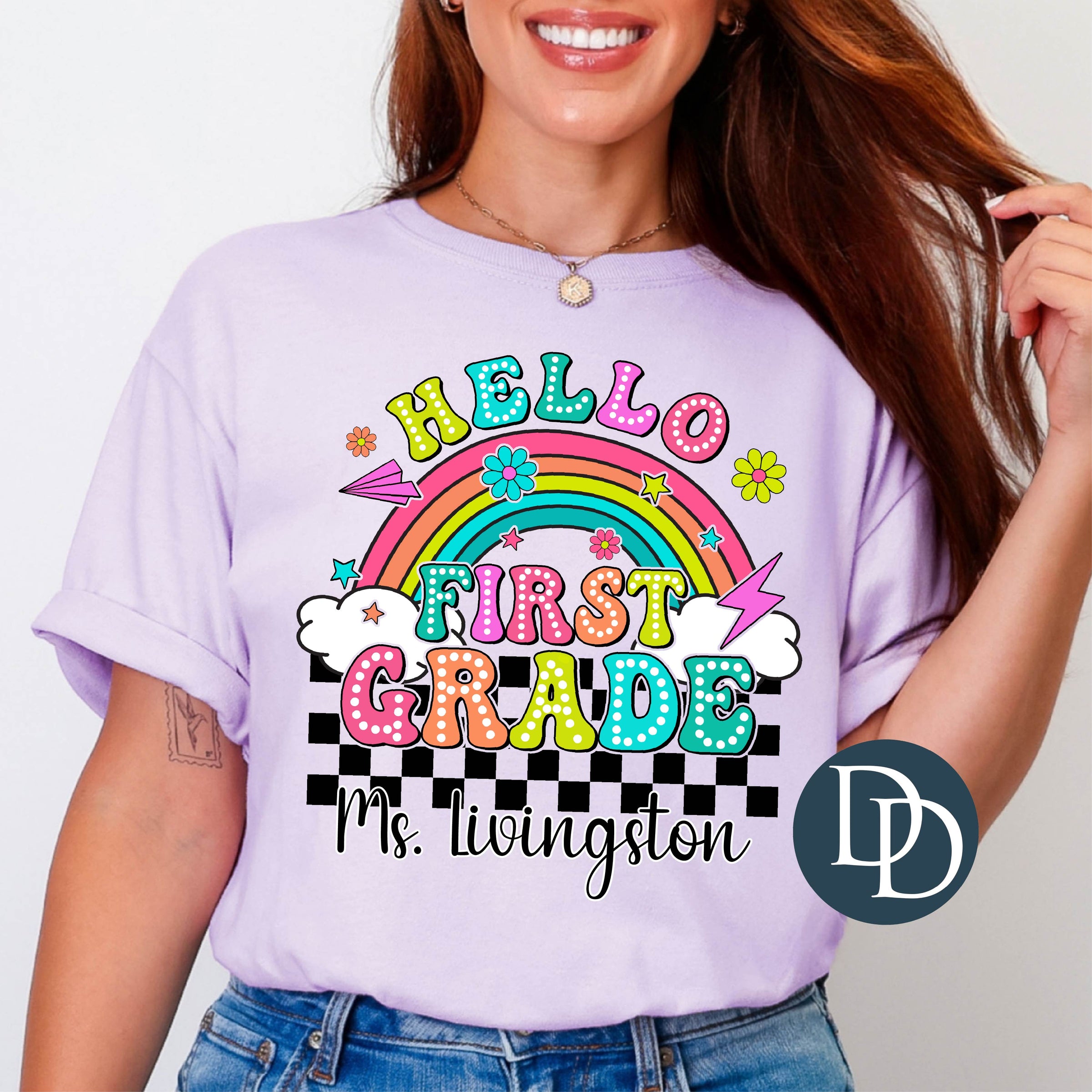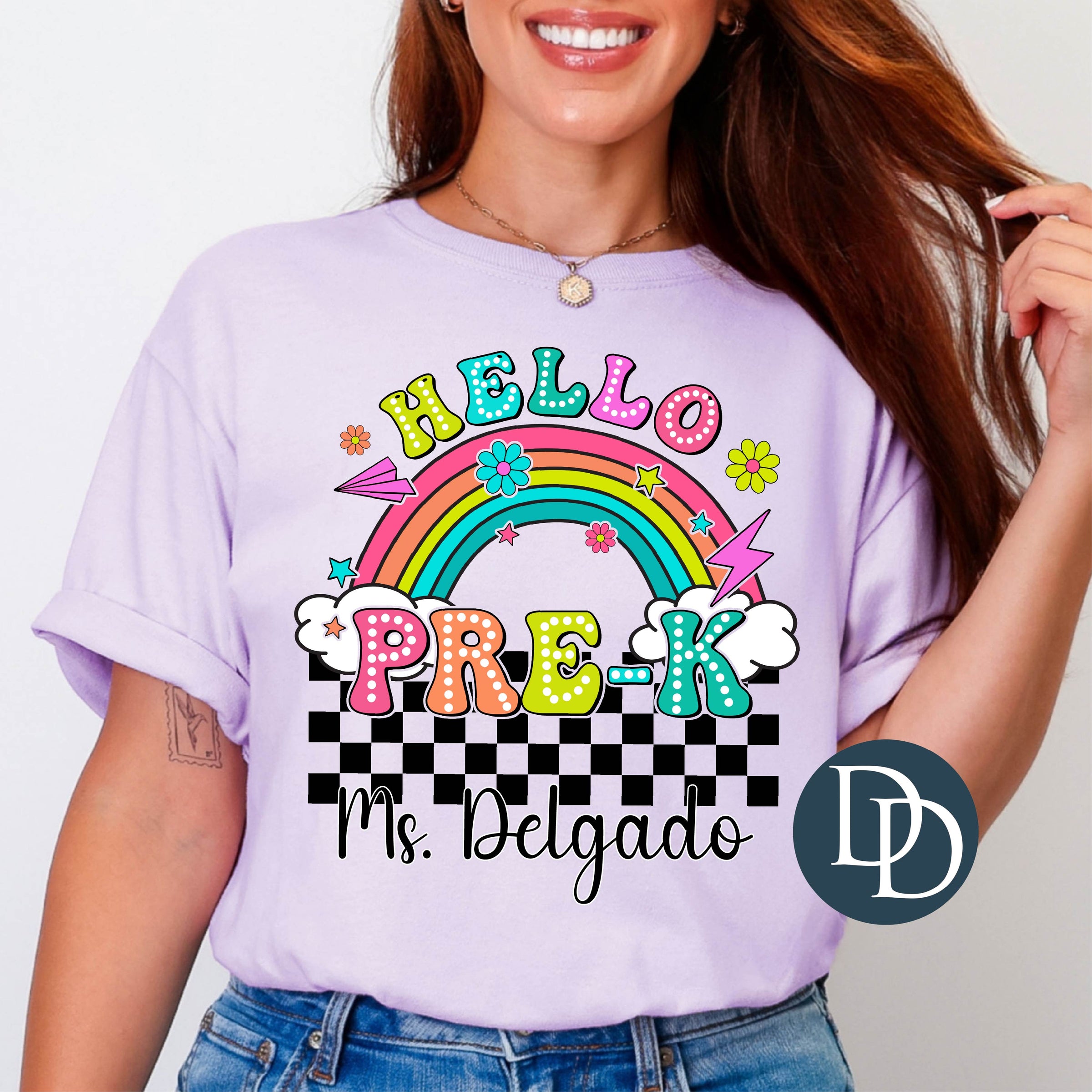 Bright Checkered Teacher Name *DTF Transfer*