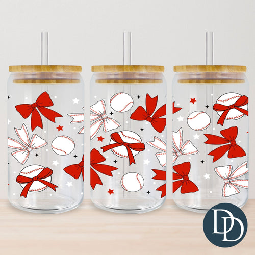 Baseball Vintage Heart and Bow *UV DTF Cup Wrap*