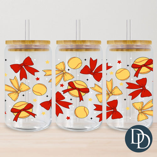 Softball Vintage Heart and Bow *UV DTF Cup Wrap*