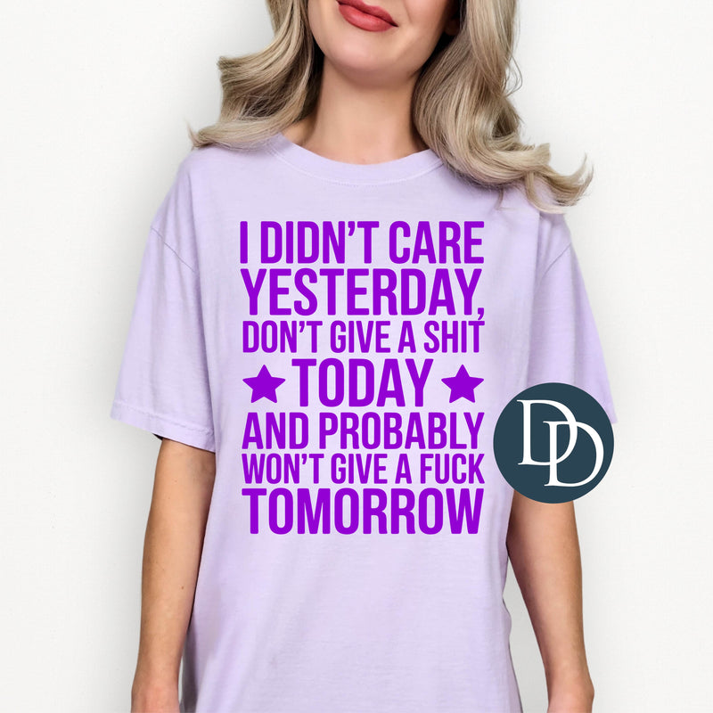 OVERSIZED I Didn't Care Yesterday *DTF Transfer*