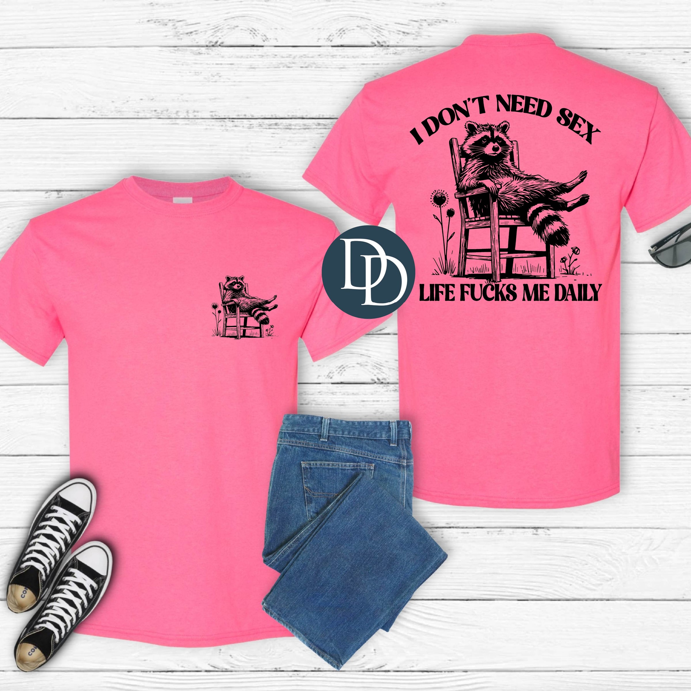 OVERSIZED I Don't Need Sex Raccoon With Pocket Accent *DTF Transfer*