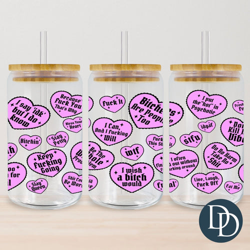 Sweary Pink Hearts *UV DTF Cup Wrap*