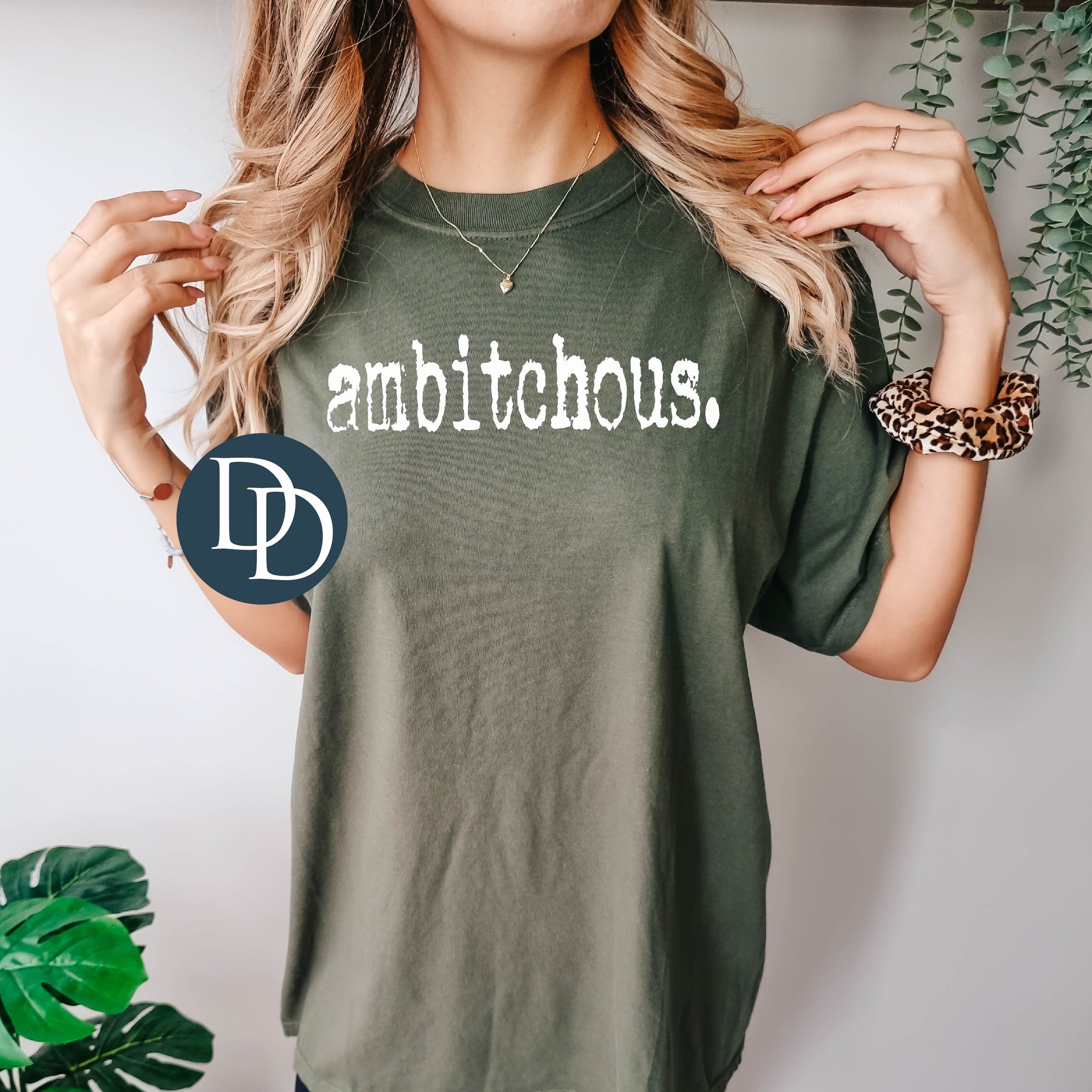 Ambitchous Typo Font with Hat Print (White Ink) *Screen Print Transfer*