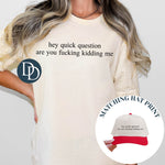 Quick Question Kidding Me with Hat Transfer (Black Ink) - NOT RESTOCKING - *Screen Print Transfer*