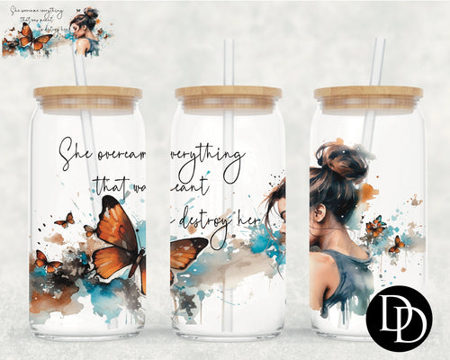 She Overcame Everything Dark Watercolor UV DTF Cup Wrap