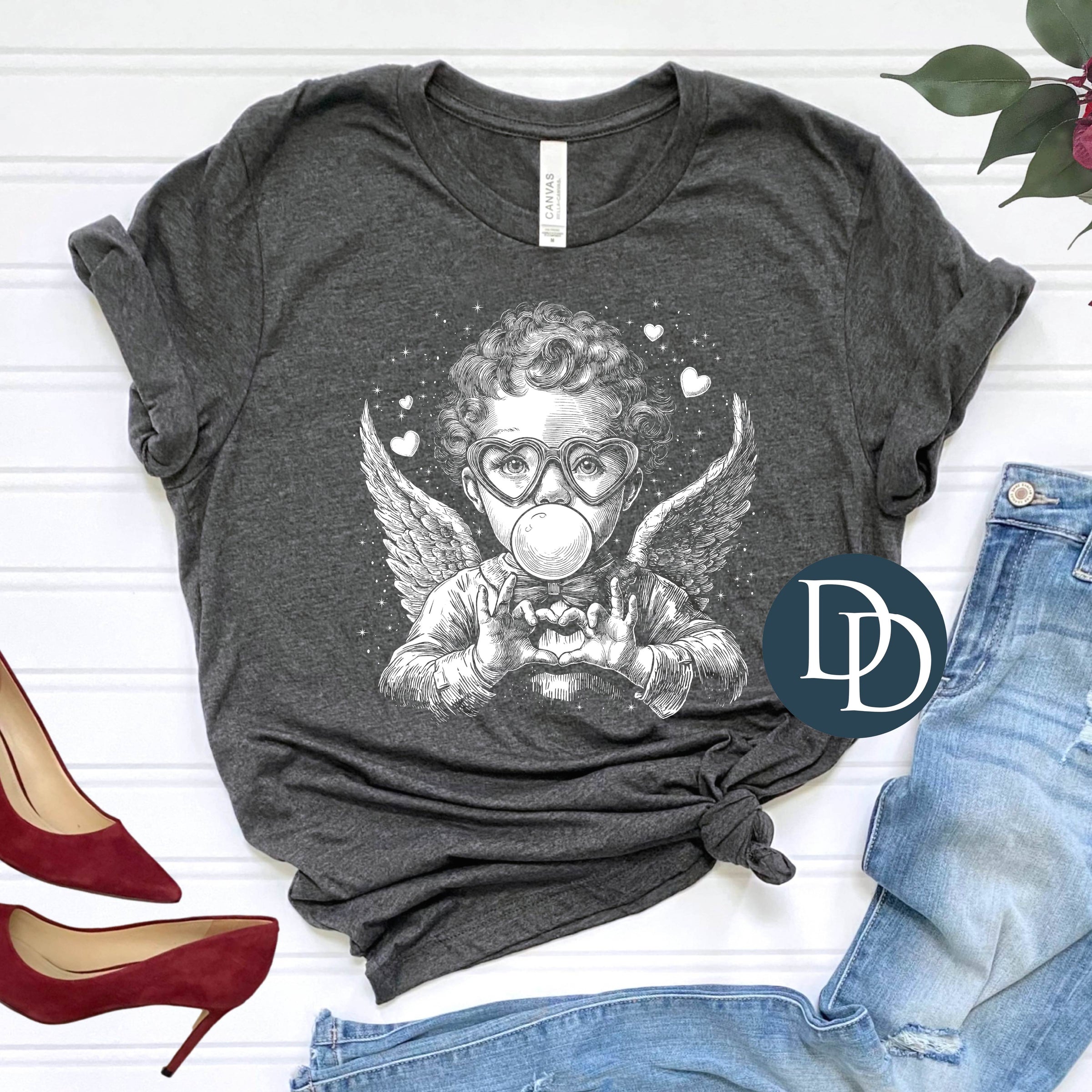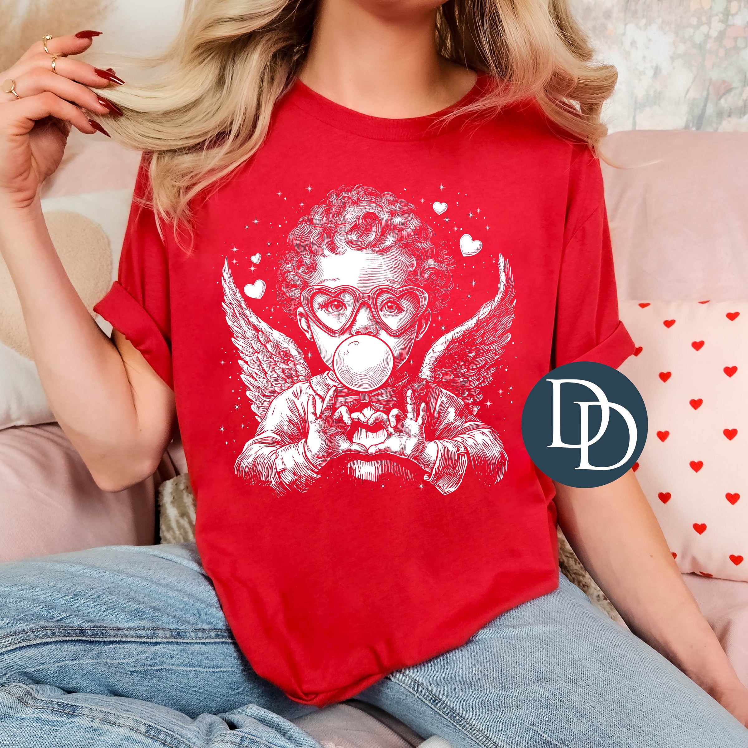 Cupid Heart Hands And Bubblegum (White Ink) *Screen Print Transfer*