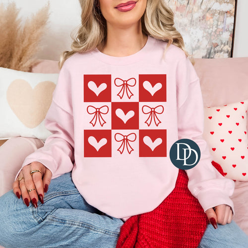 Checkered Valentine's Bows (Red Ink) - *Screen Print Transfer*