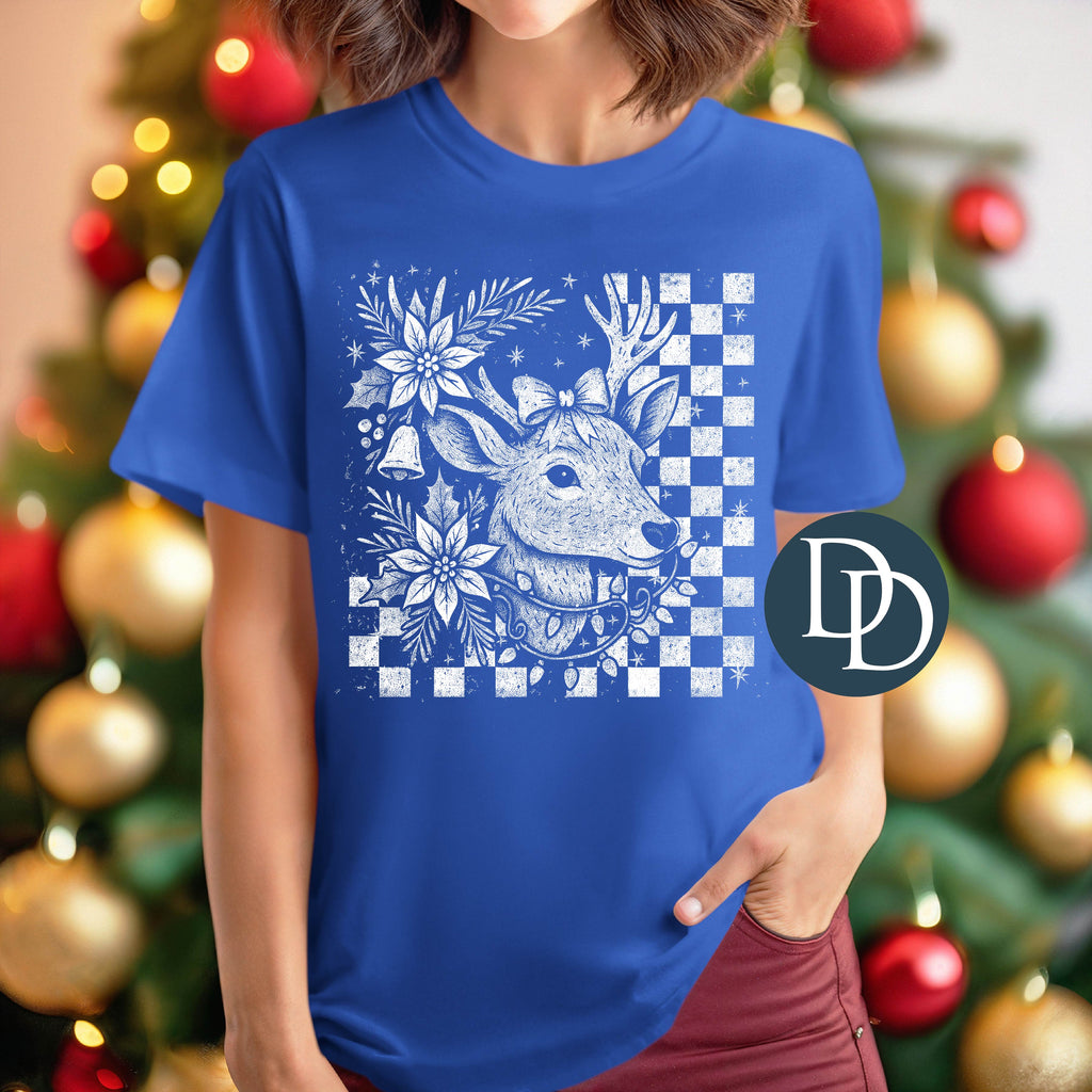 Checkered Christmas Poinsettia Deer *DTF Transfer*