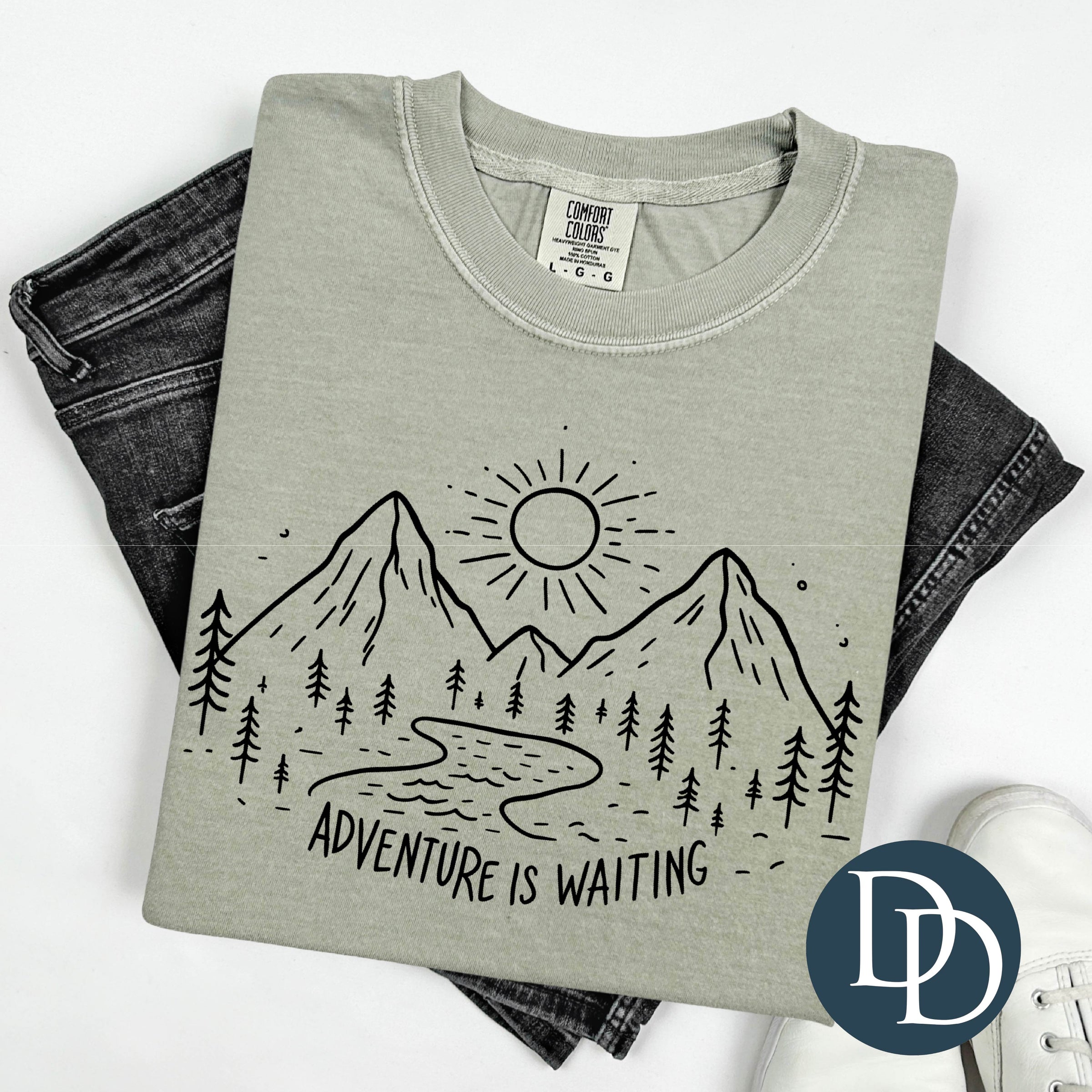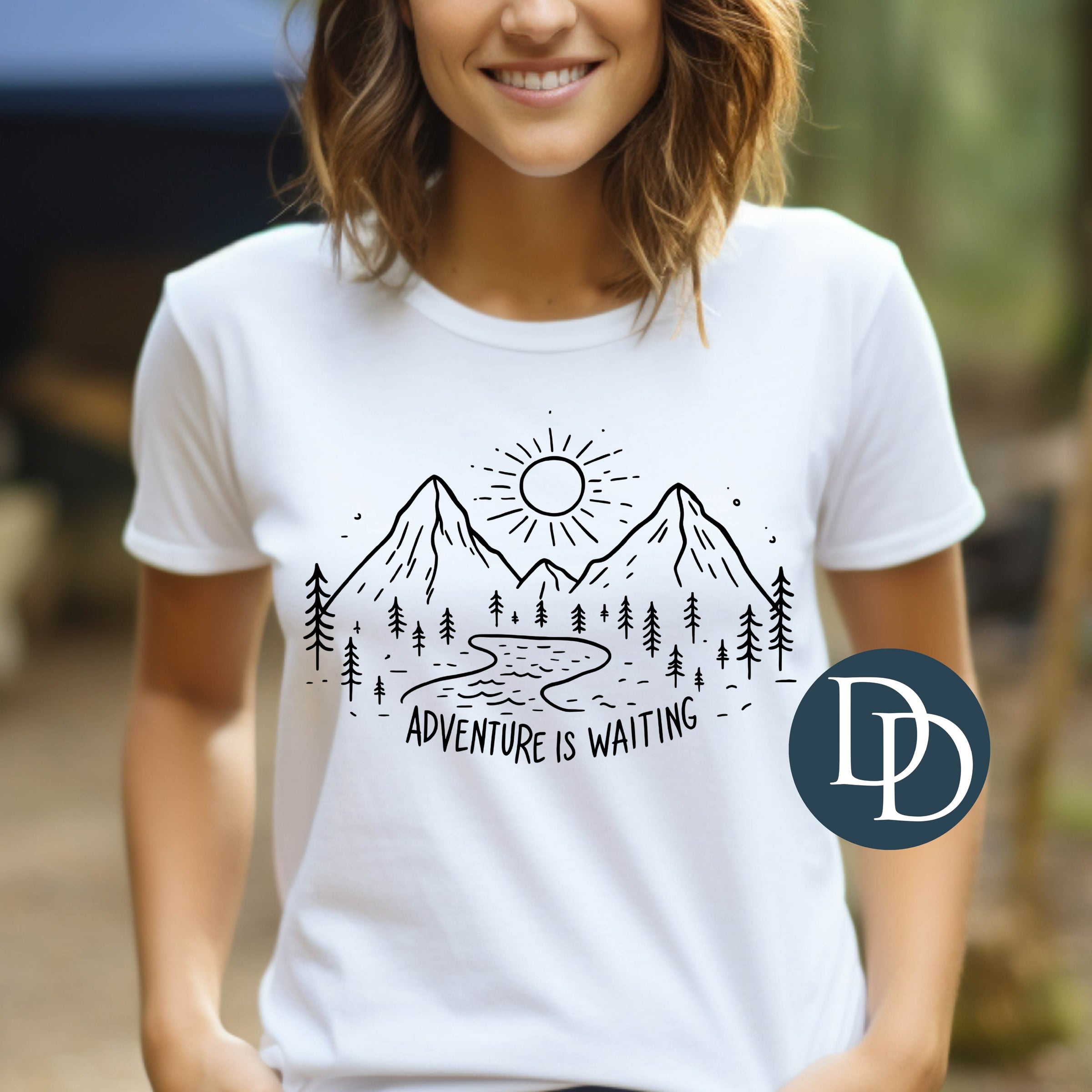 Adventure Is Waiting Mountainscape (Black Ink) *Screen Print Transfer*