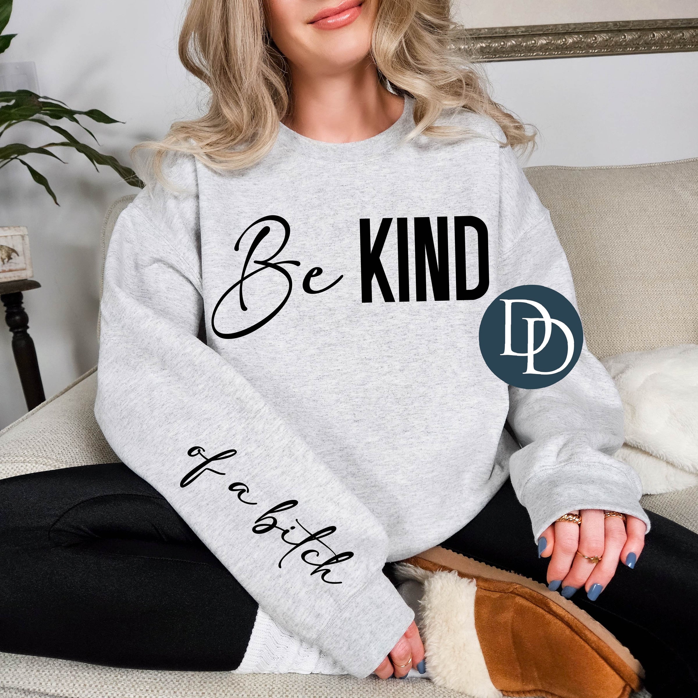 Be Kind Of A Btch Script With Sleeve Accent (Black Ink) *Screen Print Transfer*