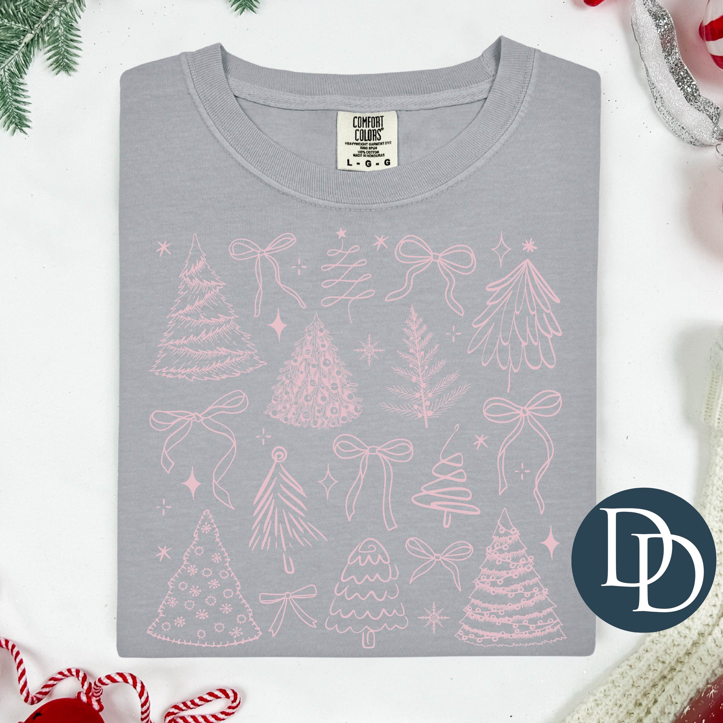Christmas Tree Bow Collage (Baby Pink Ink) *Screen Print Transfer*