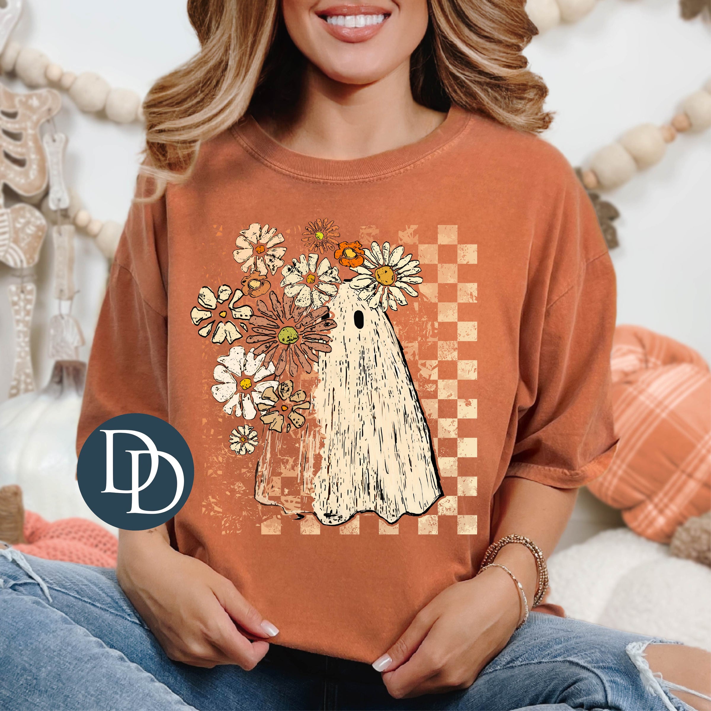 Distressed Floral Boho Peek A Boo Ghost *DTF Transfer*