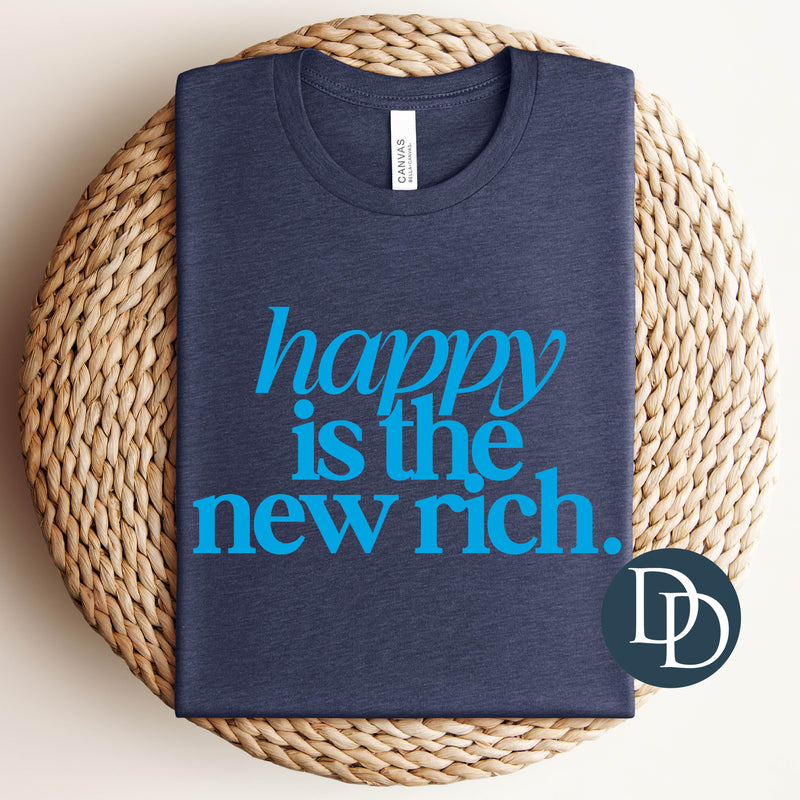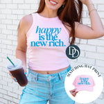 Happy is the New Rich with Hat Print (Columbia Blue Ink) *Screen Print Transfer*