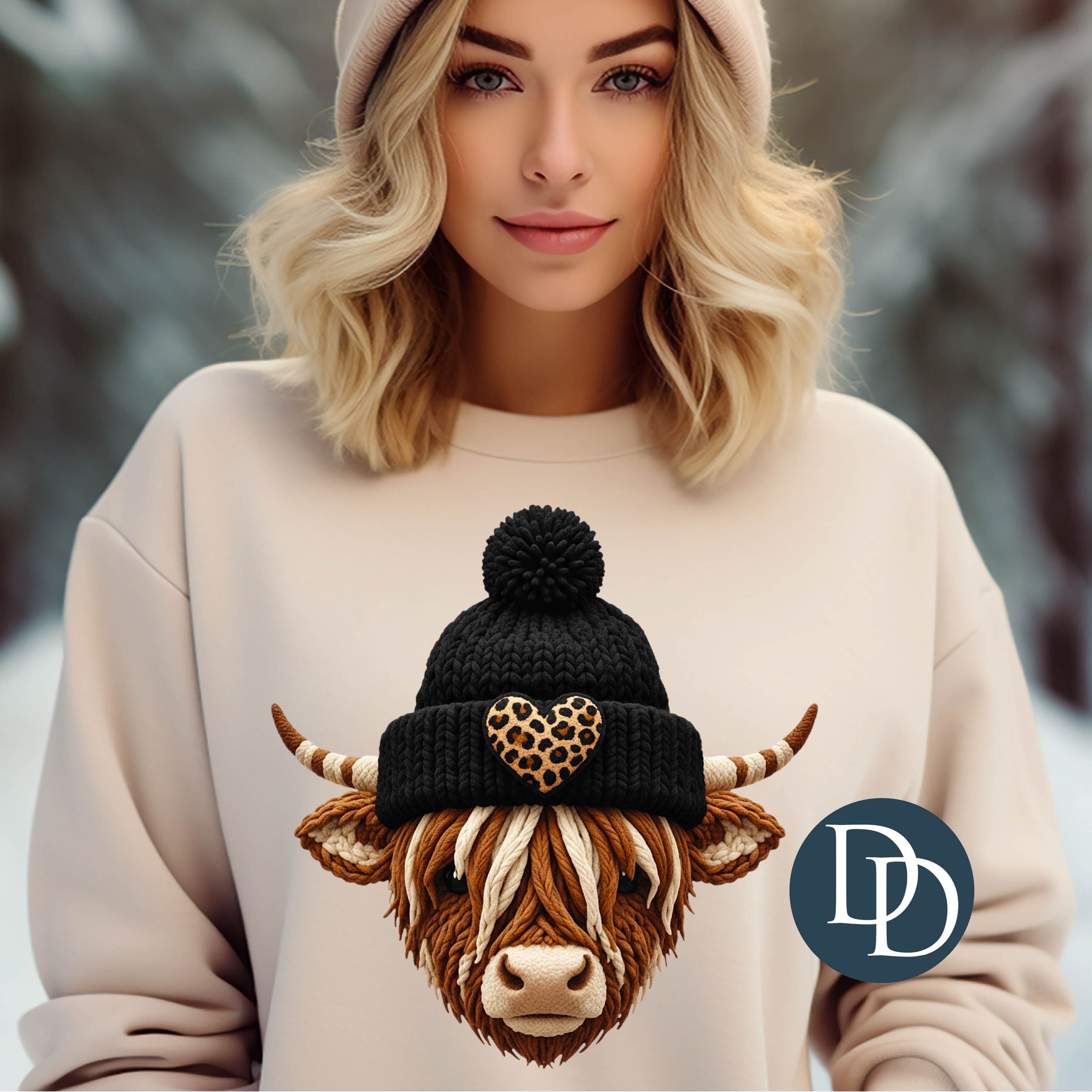 Highland Cow Beanie Faux Yarn *DTF Transfer*