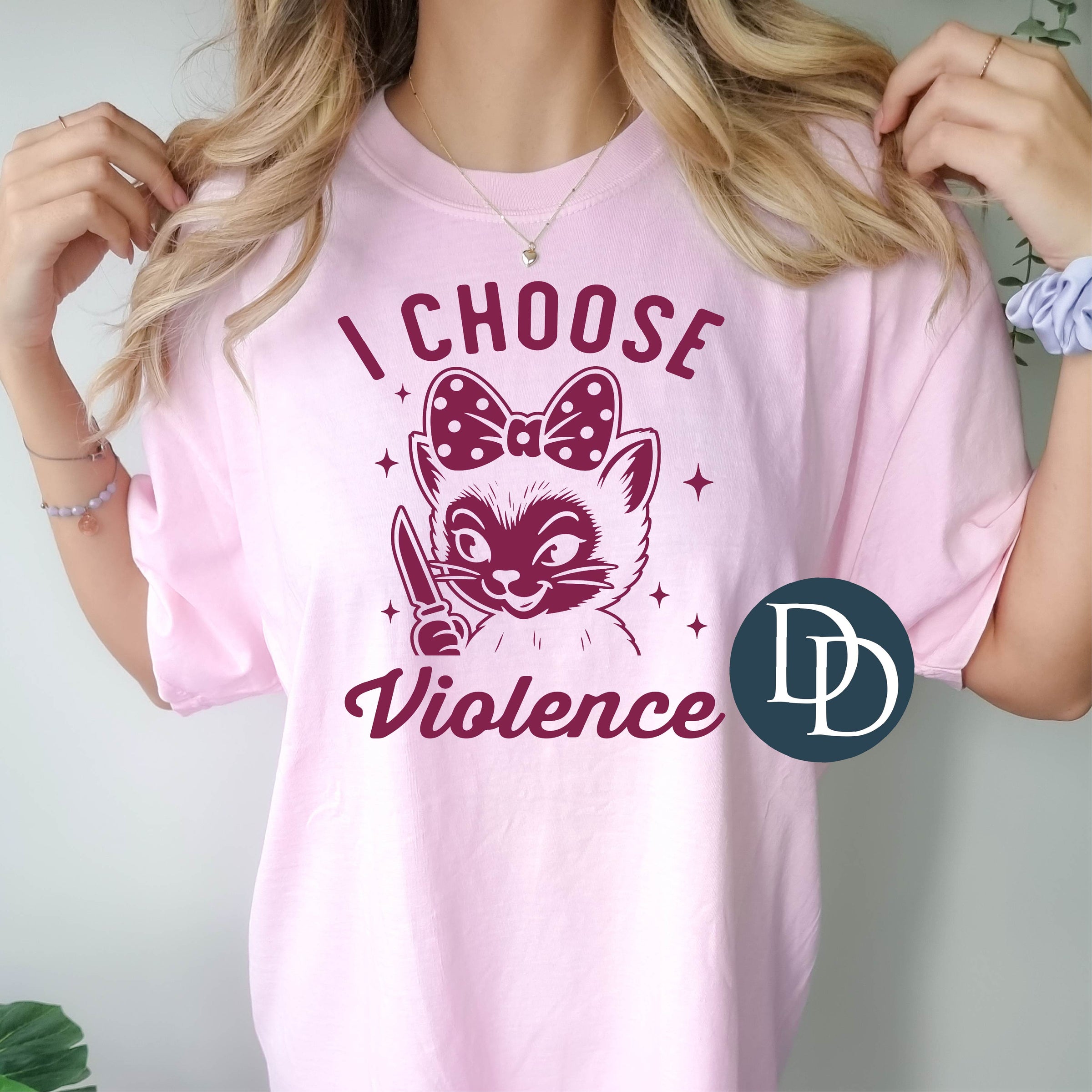 I Choose Violence Kitty (Burgundy Ink) *Screen Print Transfer*