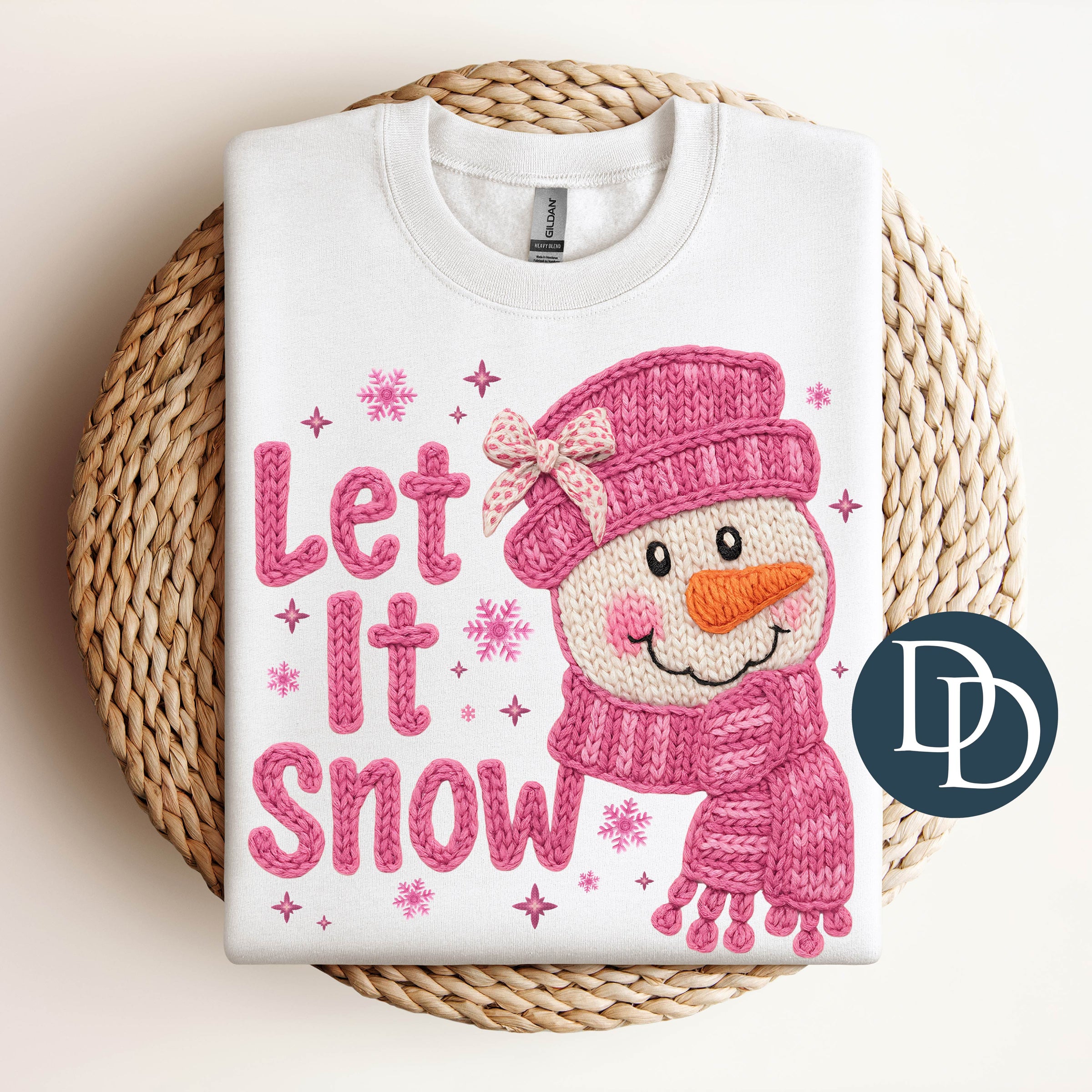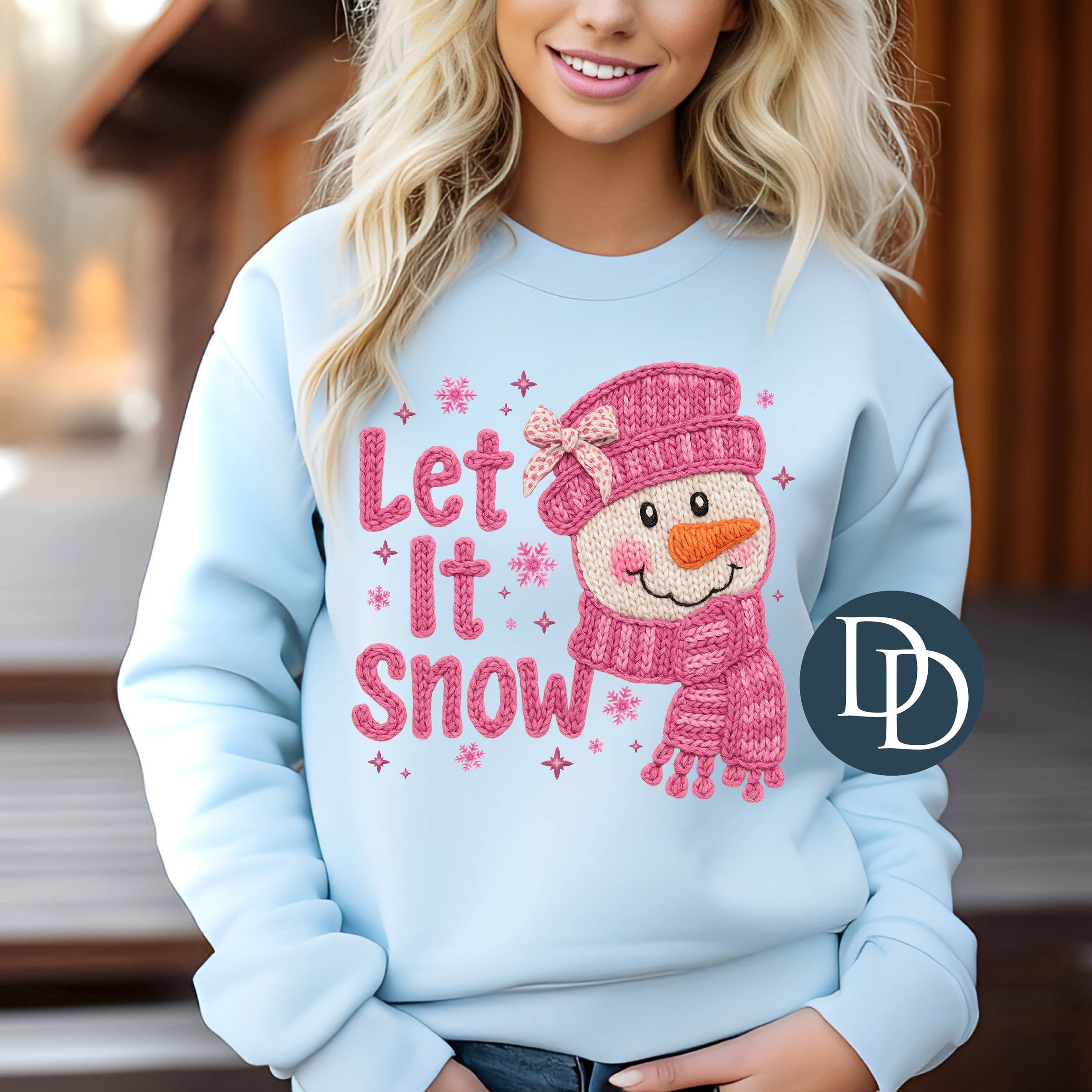 Let It Snow Pink Snowman Faux Yarn *DTF Transfer*