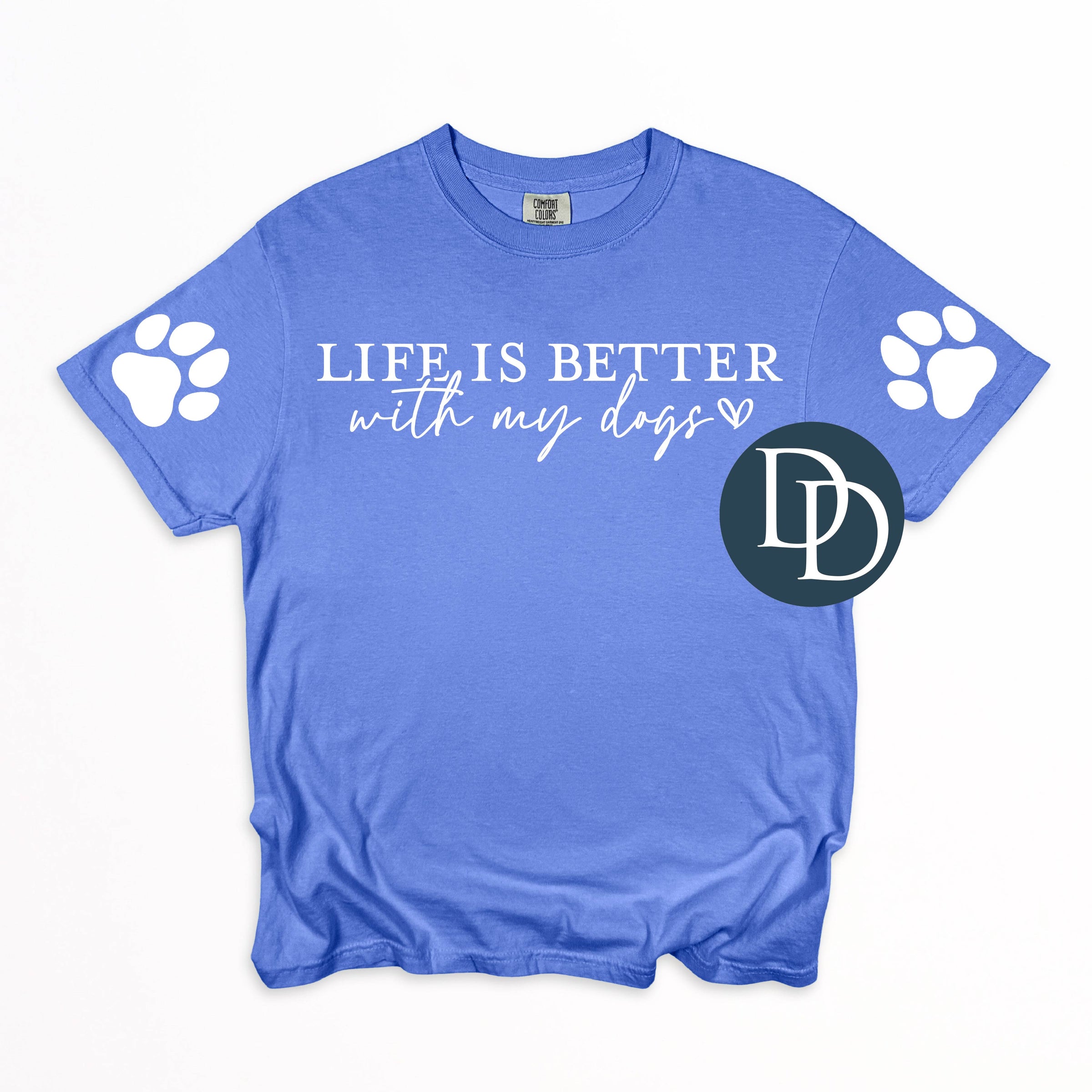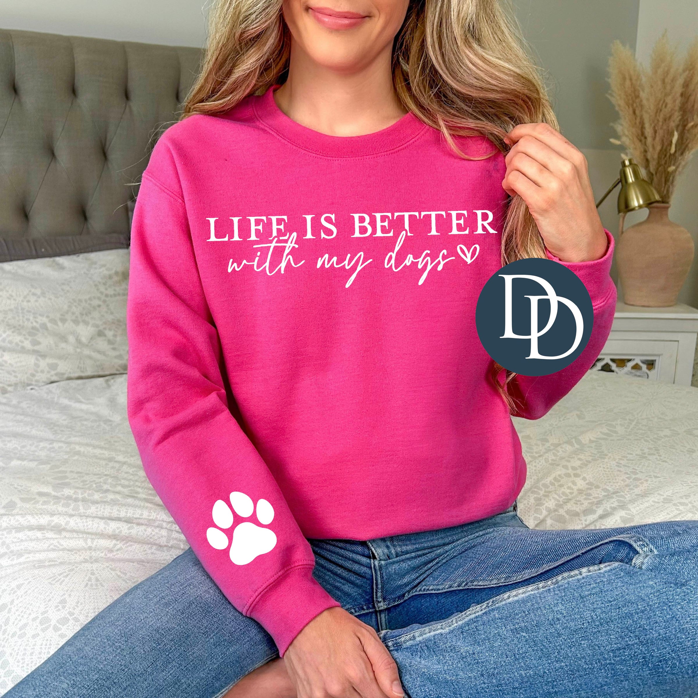 Life Is Better With My Dogs With Paw Prints (White Ink) *Screen Print Transfer*
