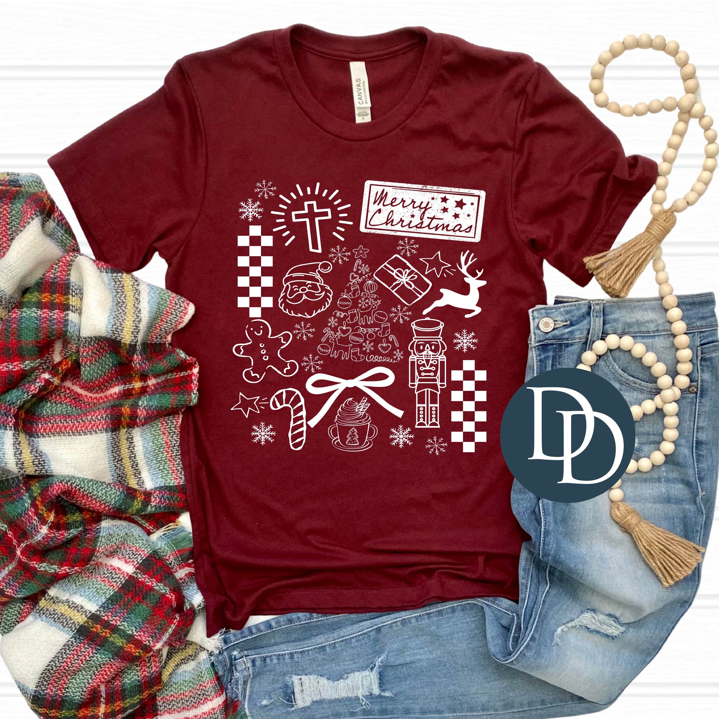 Merry Christmas Collage (White Ink) *Screen Print Transfer*