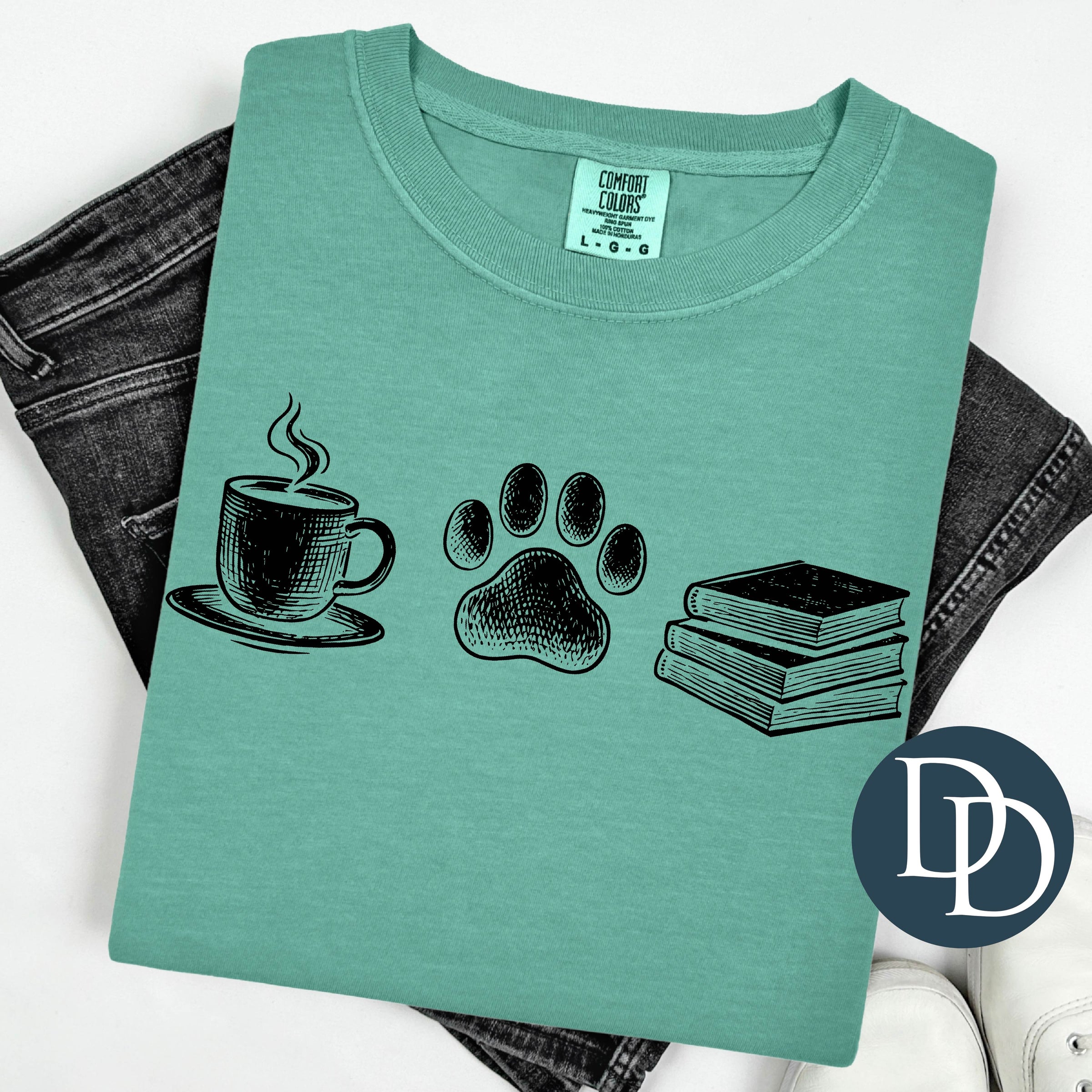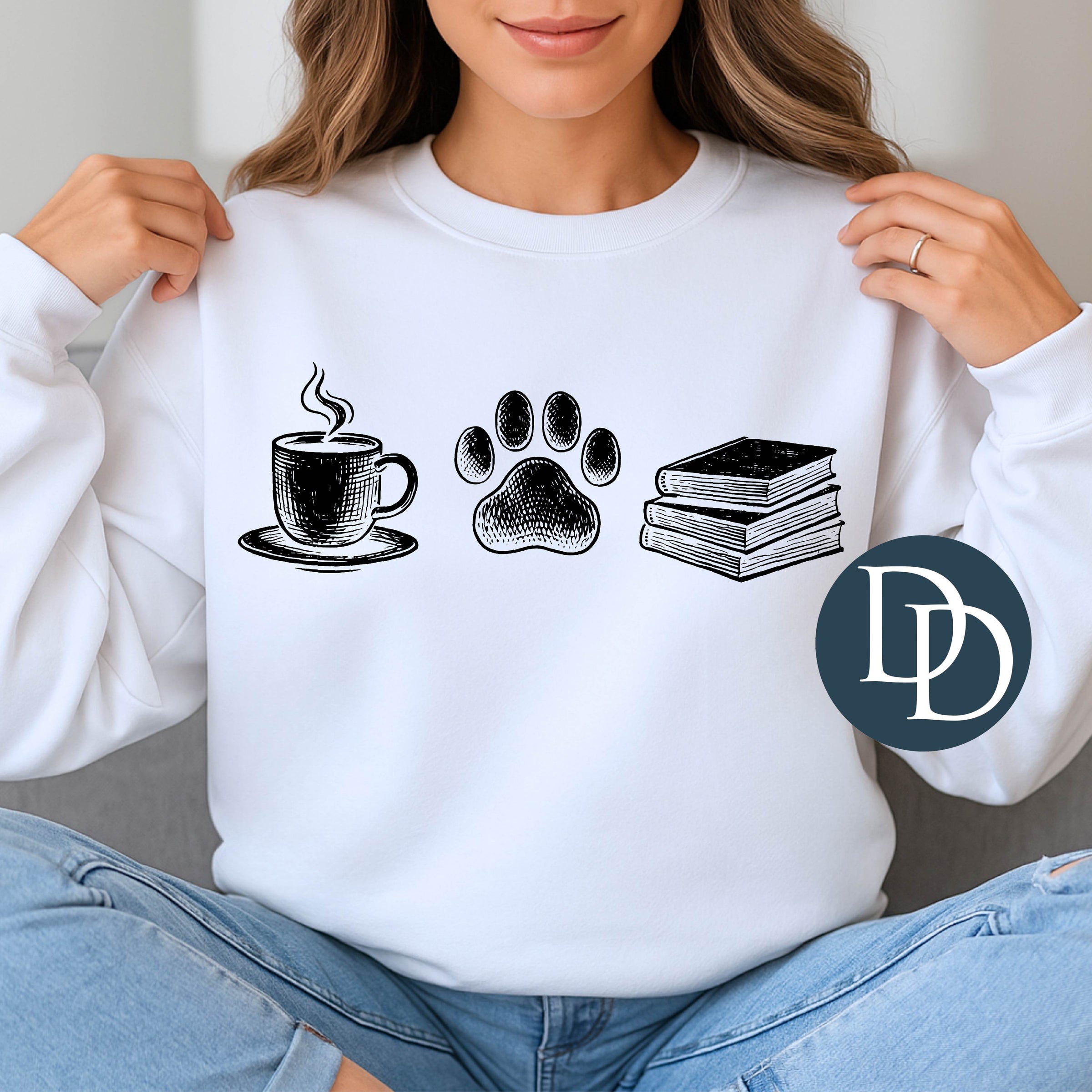 OVERSIZED Coffee Dogs Books Doodles (Black Ink) *Screen Print Transfer*