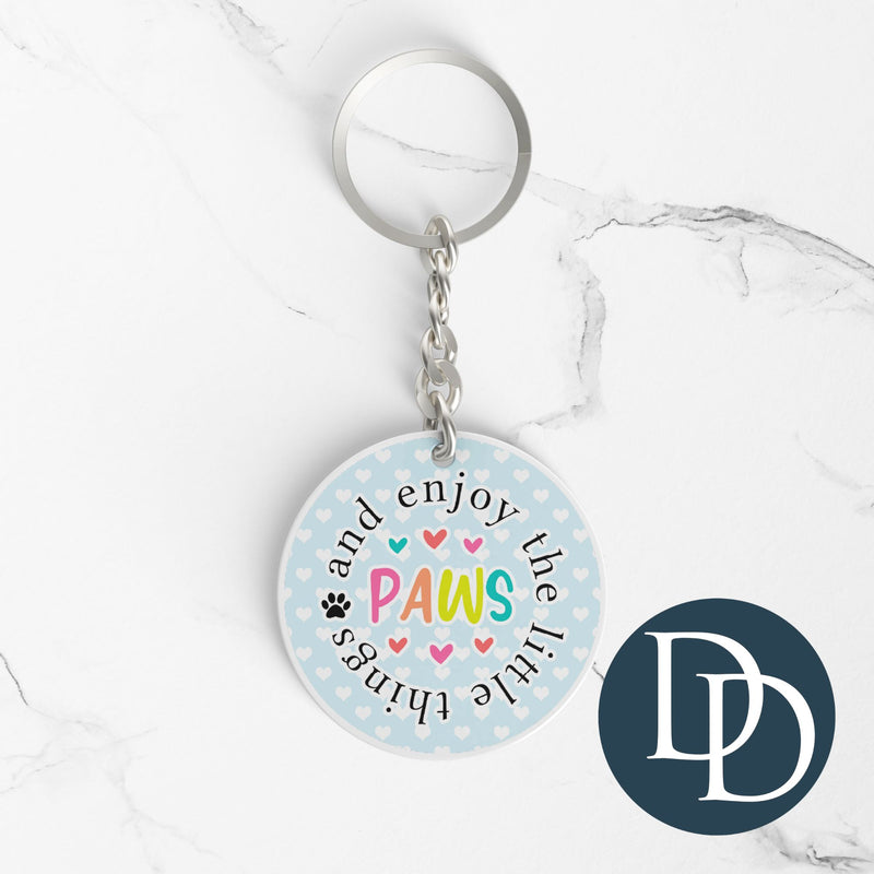 Paws And Enjoy The Little Things *Round Keychain UV DTF Decal*