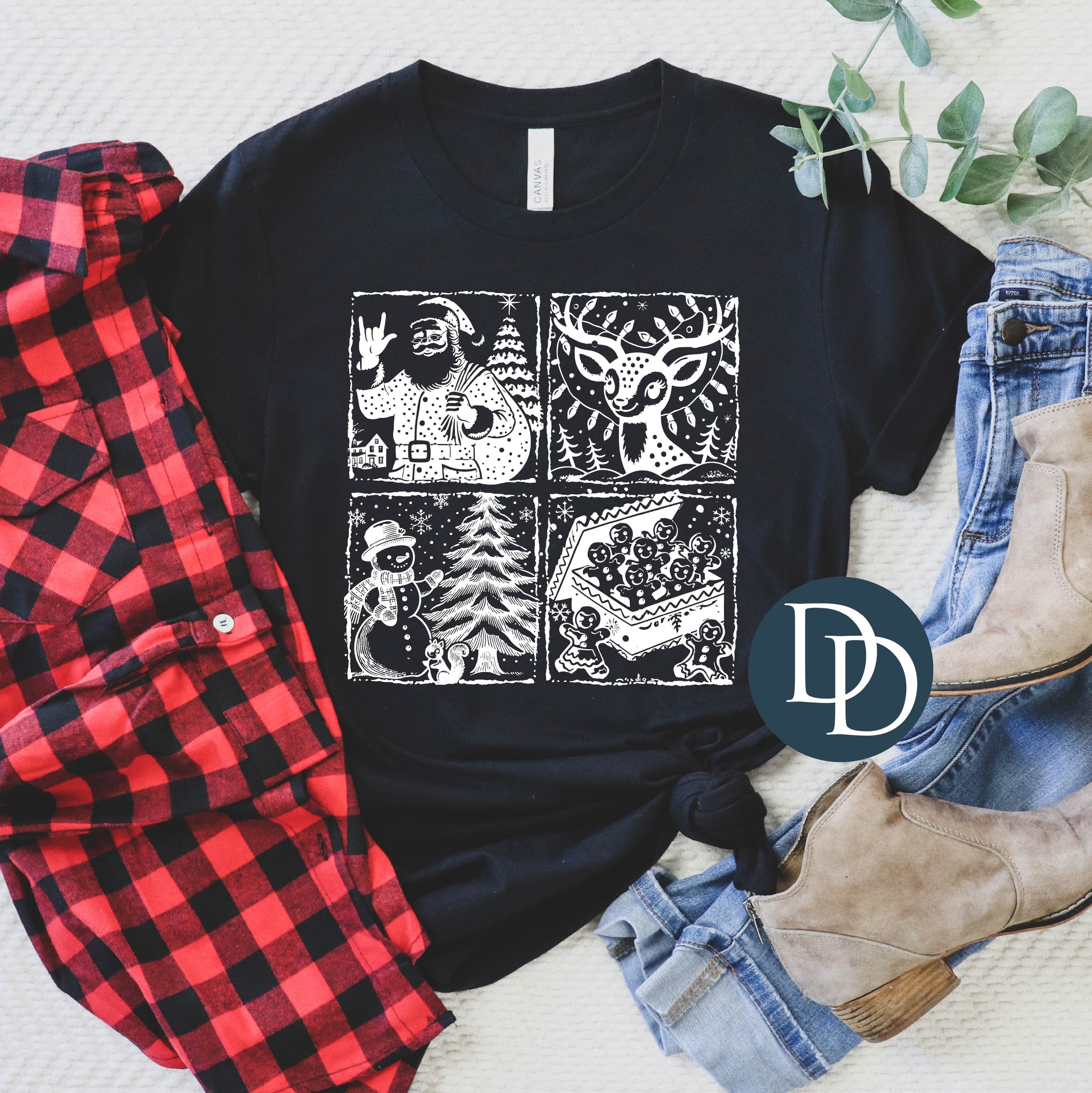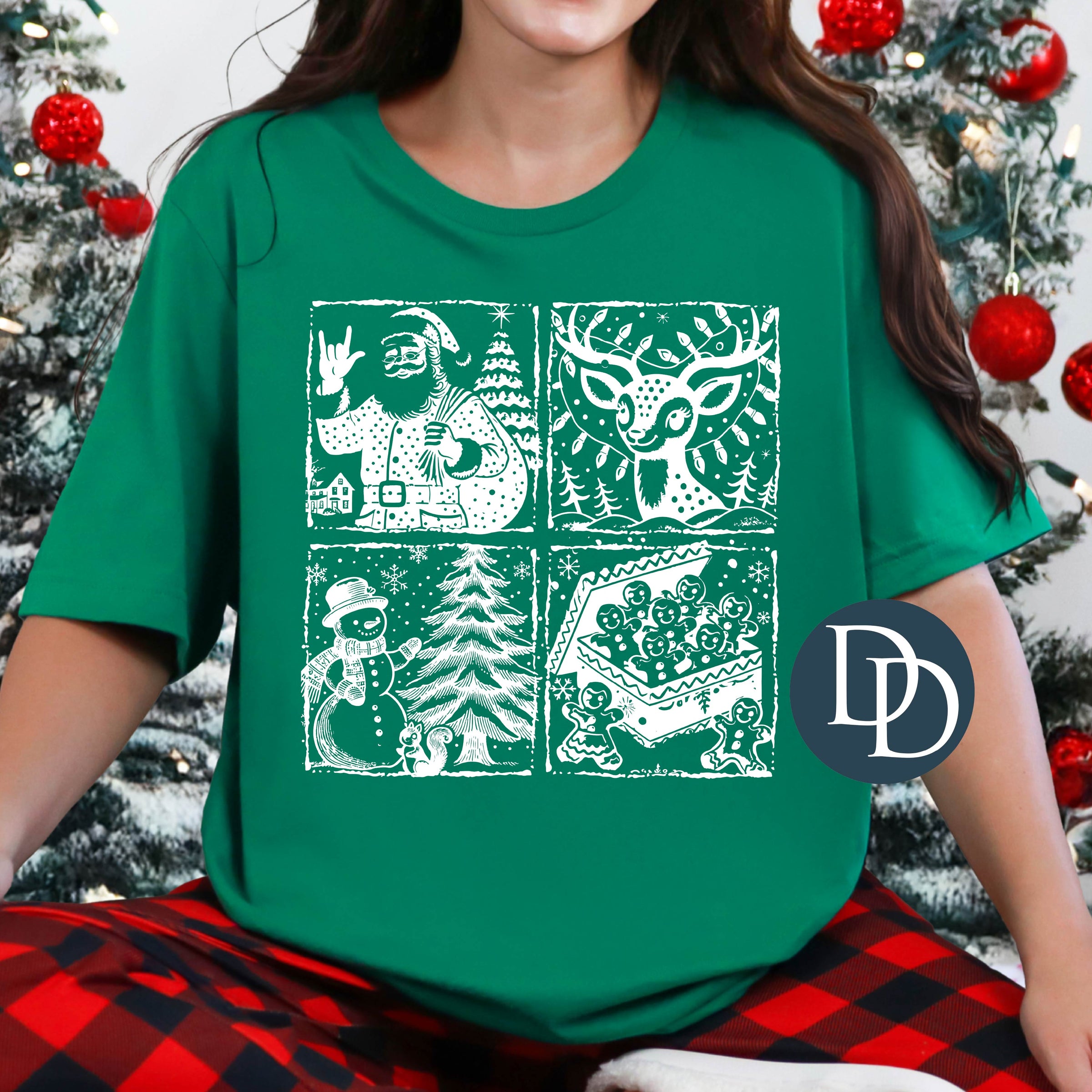 Retro Christmas Stamp Grid (White Ink) *Screen Print Transfer*