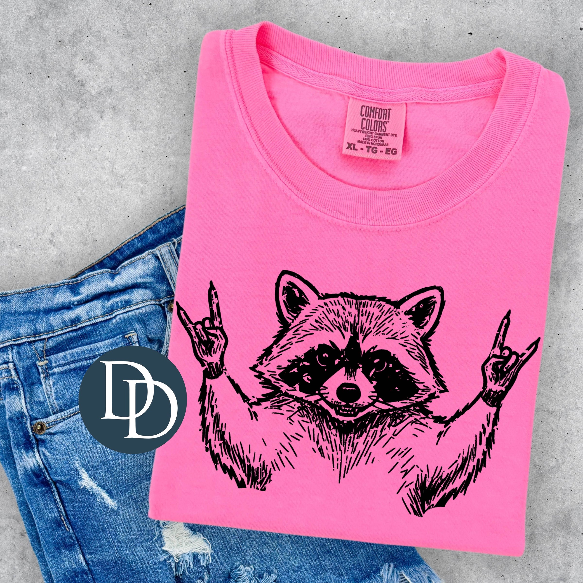 Rock On Raccoon (Black Ink) *Screen Print Transfer*